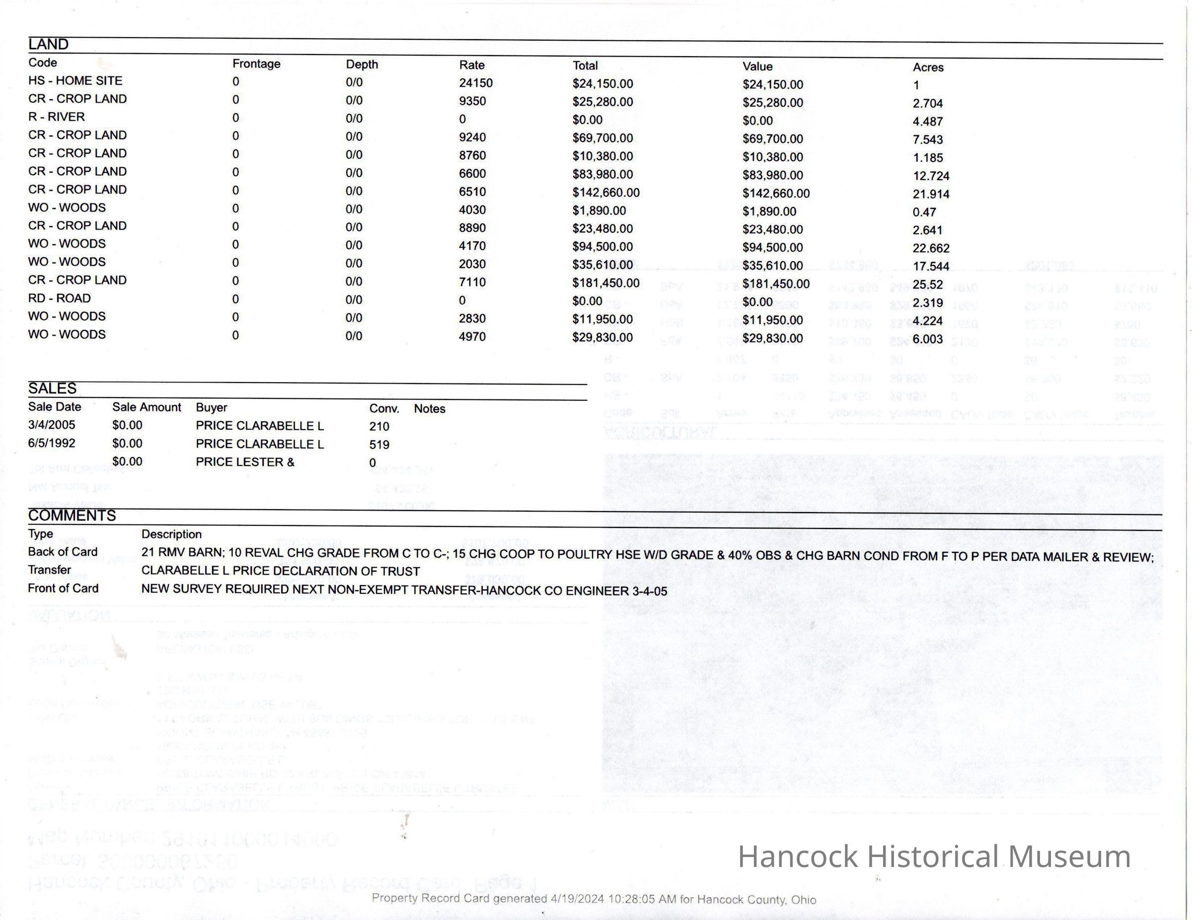 Clarabelle L Price Property Card