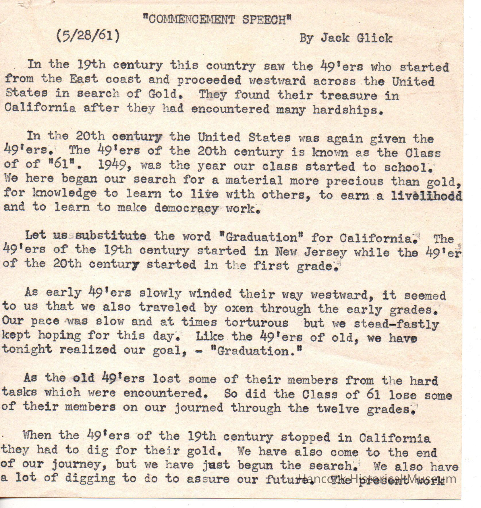 Commencement Speech by Jack GlickEntry/Object ID