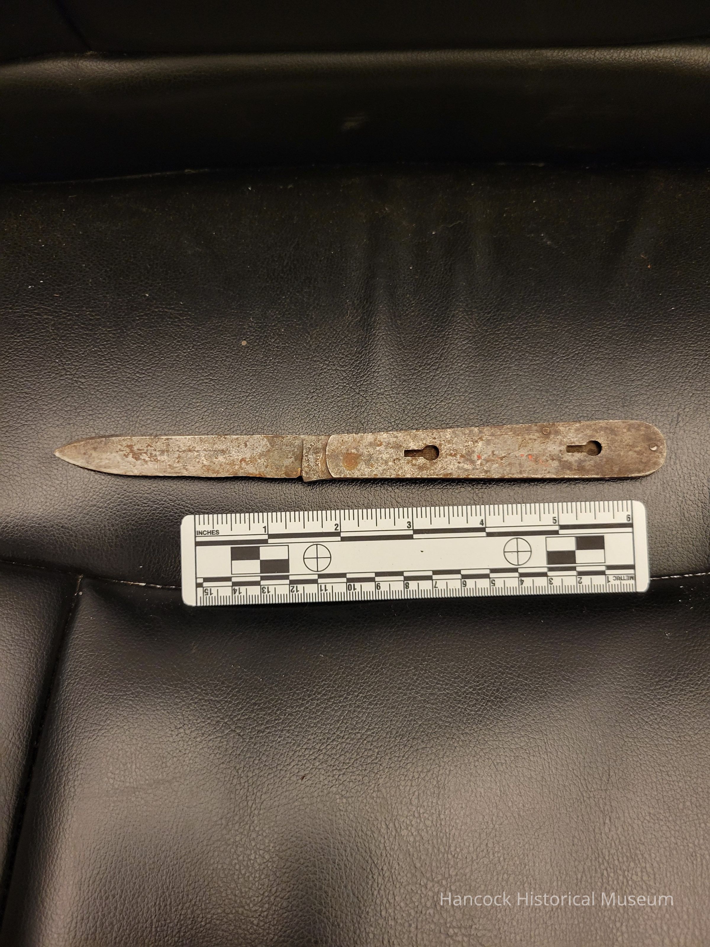 16 1/2" Civil War D guard knife w/o handle. A battlefield pickup with out markings. knife is a folding pocket or pen knife. Half the handle has been removed.