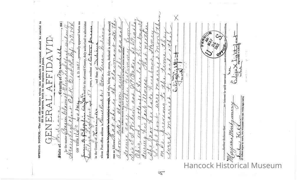 Genral affadavits for Elizabeth Lightfoot widow pension claims for year 1901.
