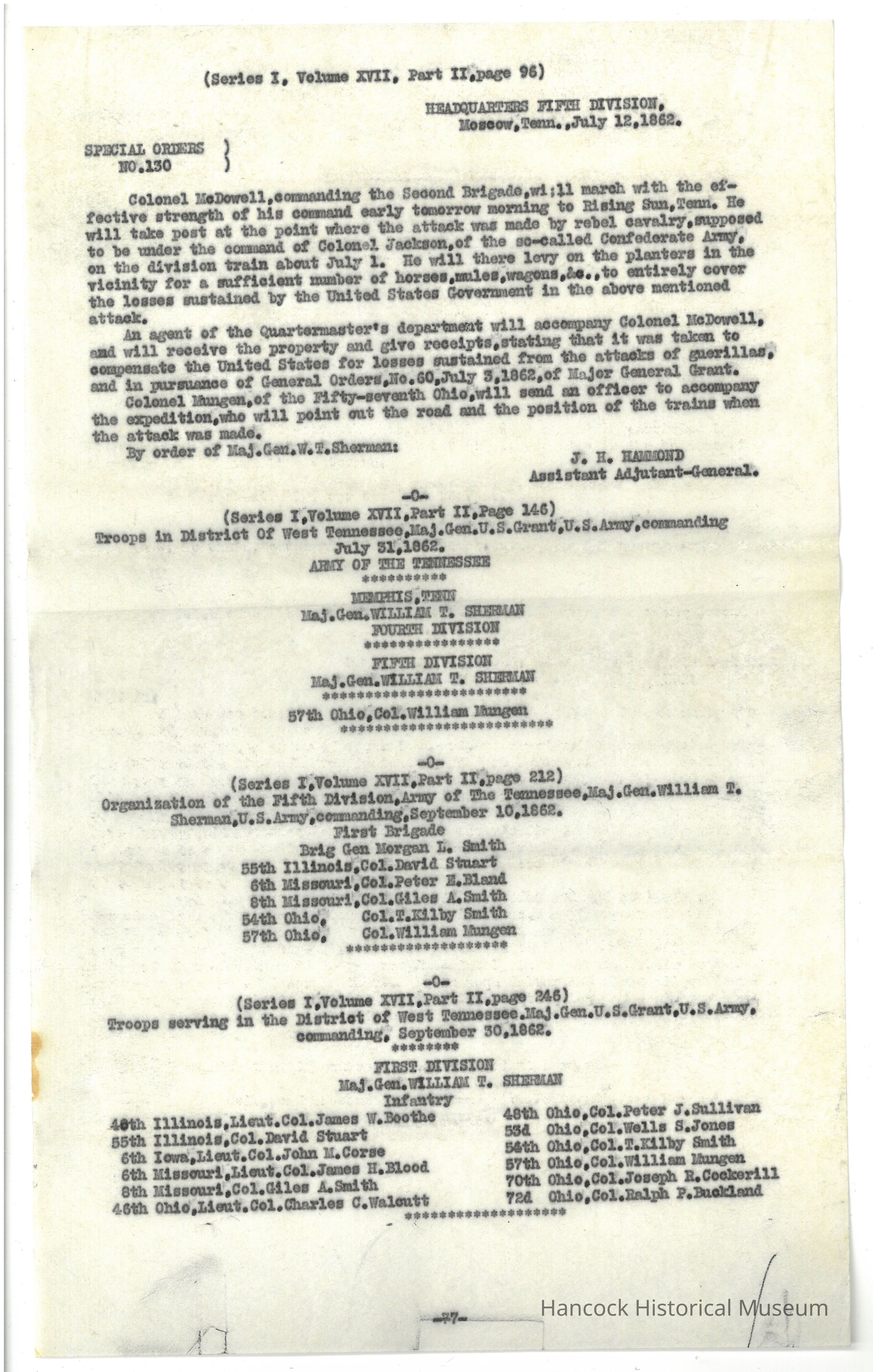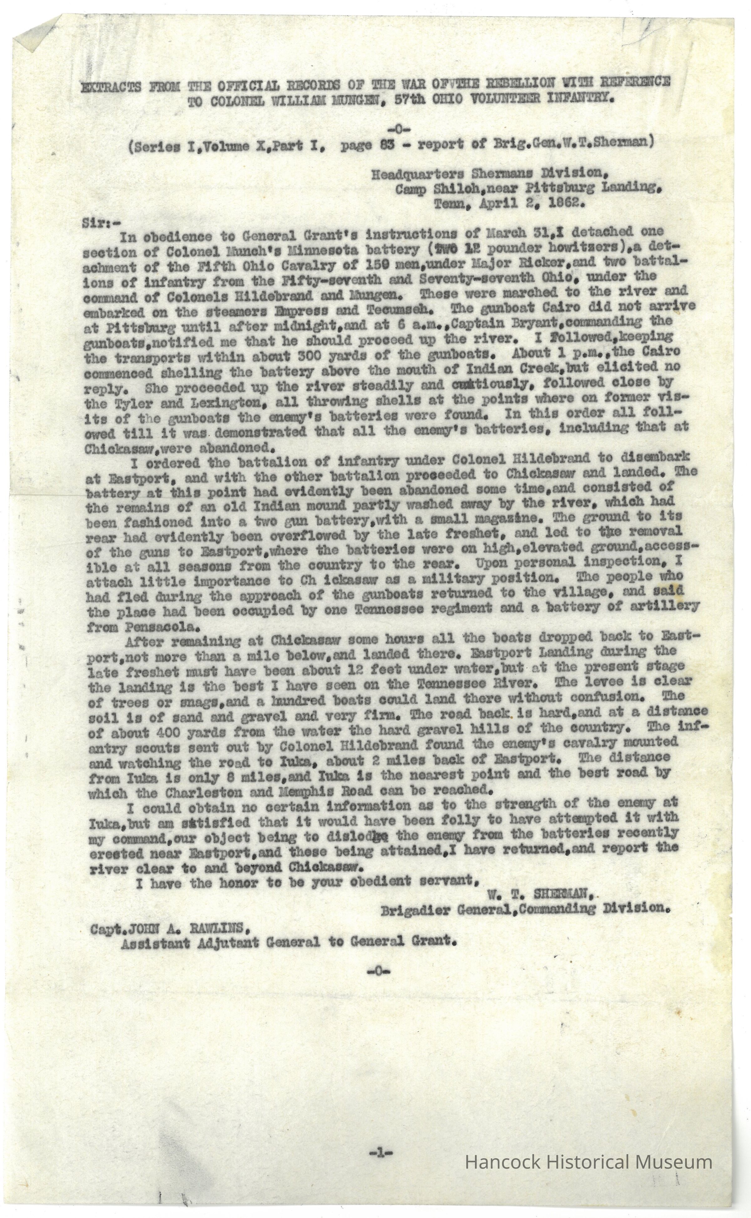 Extracts from the official records of the war of the rebellion with reference to Colonel William Mungen, 57th OVICollection