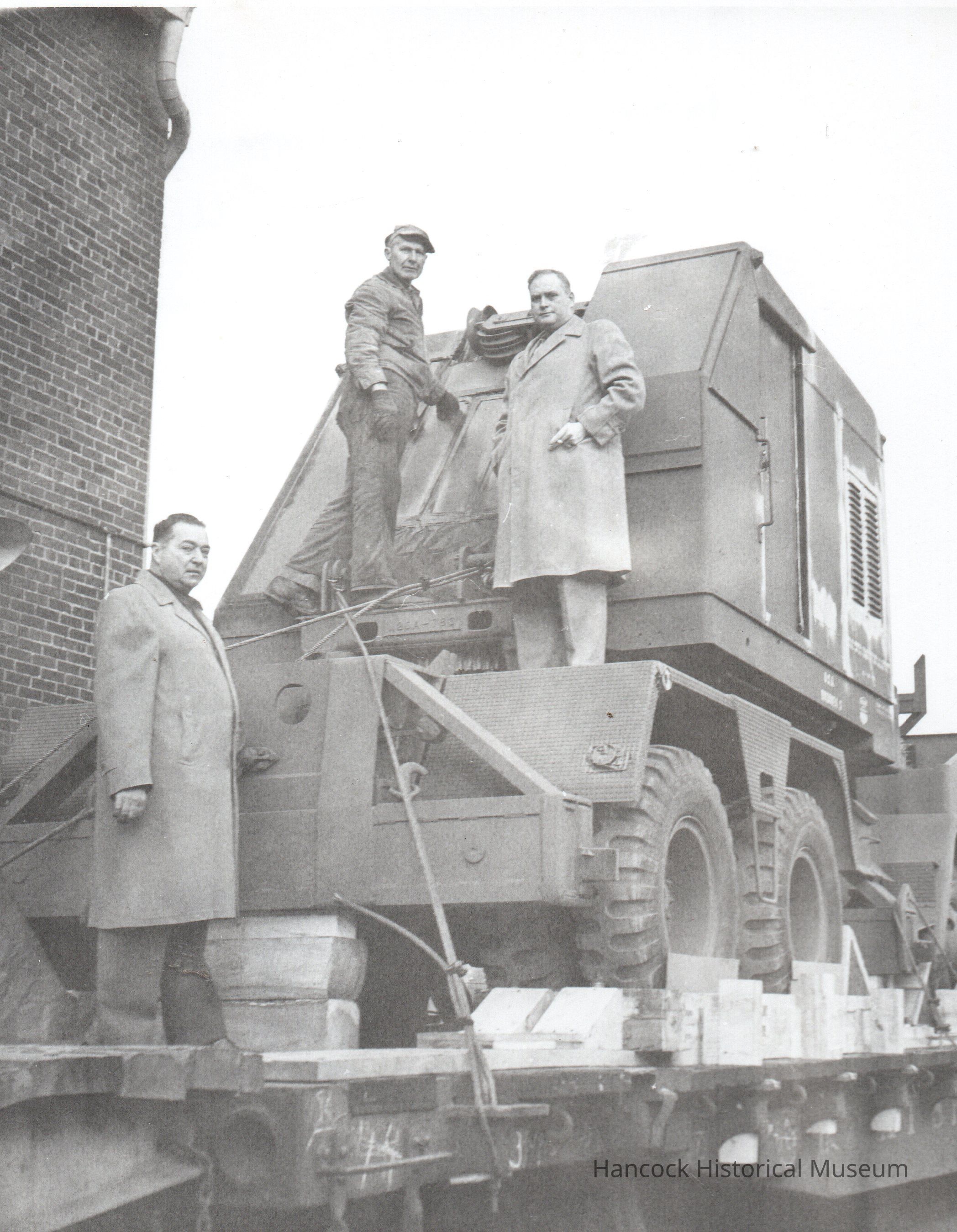 4 x 5 b/w photo of men standing on a ditching machine on a rail car by Buckeye Traction Ditcher Co, 200 Crystal Ave, Findlay, Oh undated.Collection