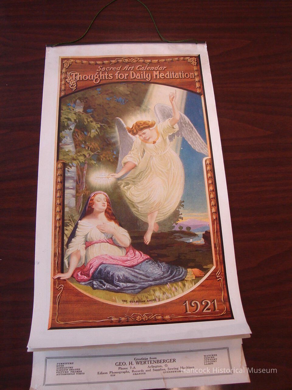 9 x 18 color cover calendar from George H Wertenberger Store, Arlington, Oh for 1921.Collection