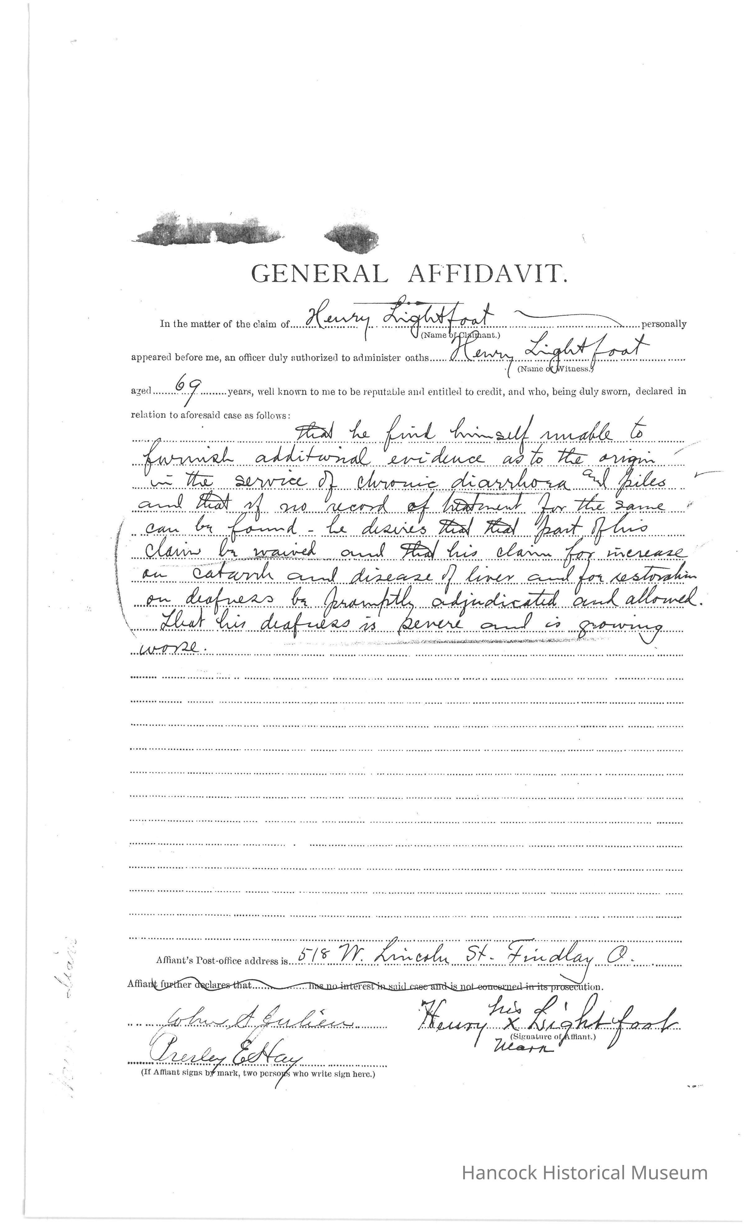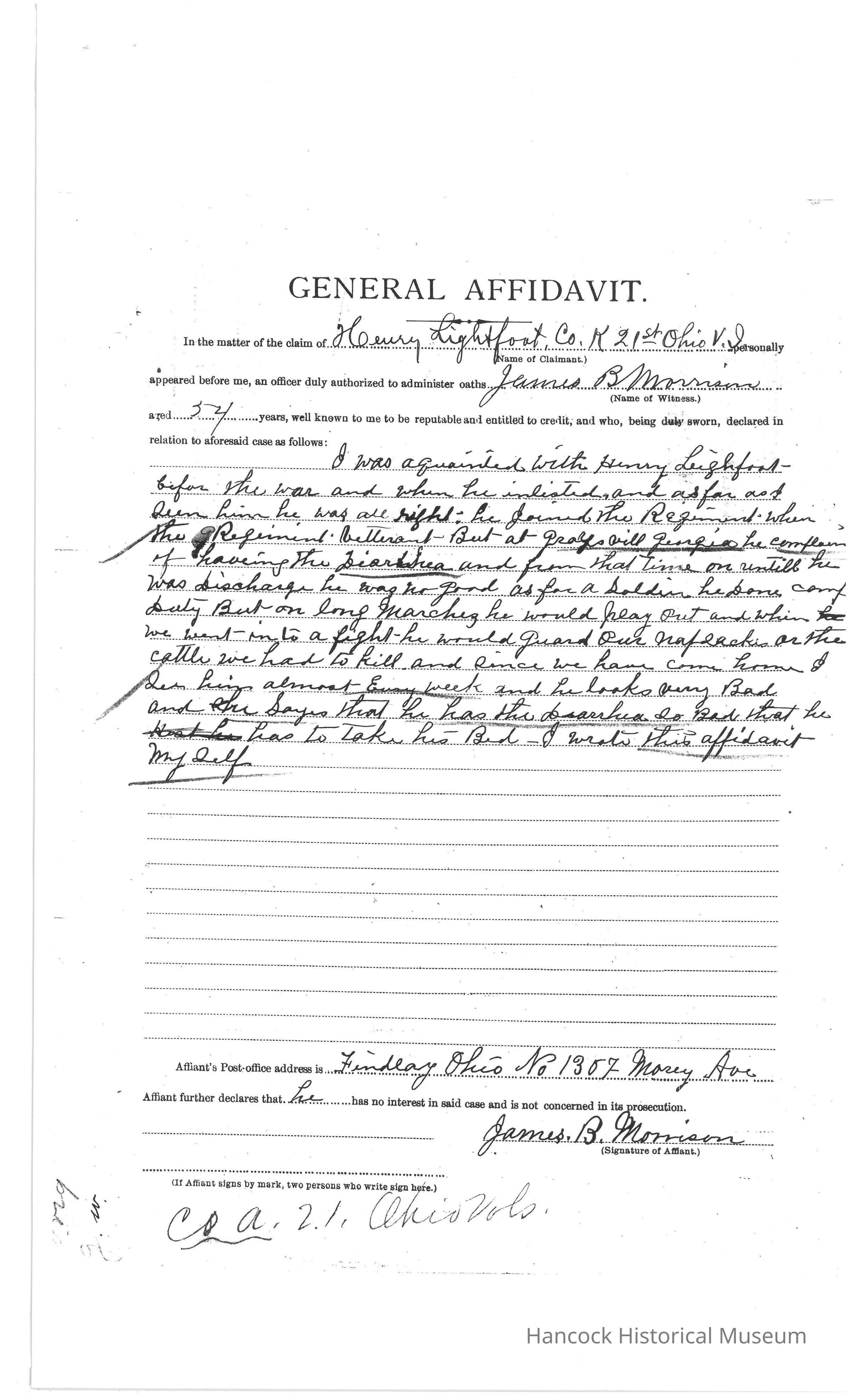 Henry Lightfoot Civil War Pension Records