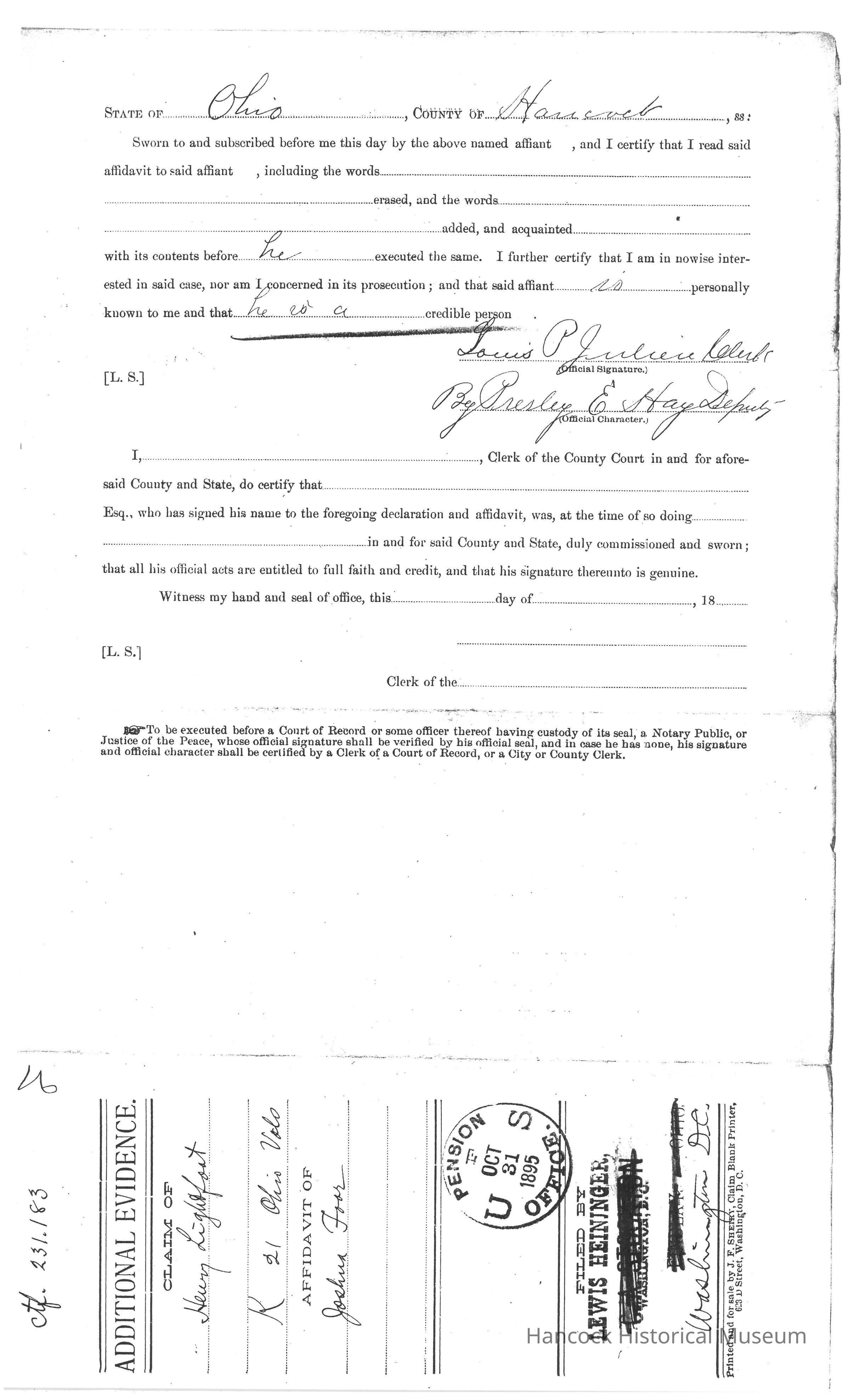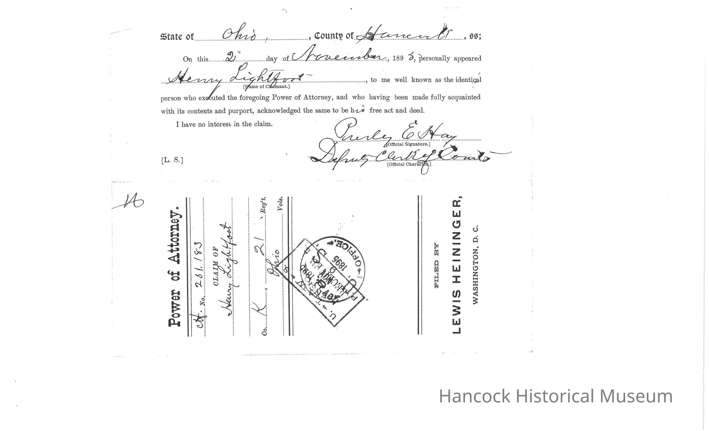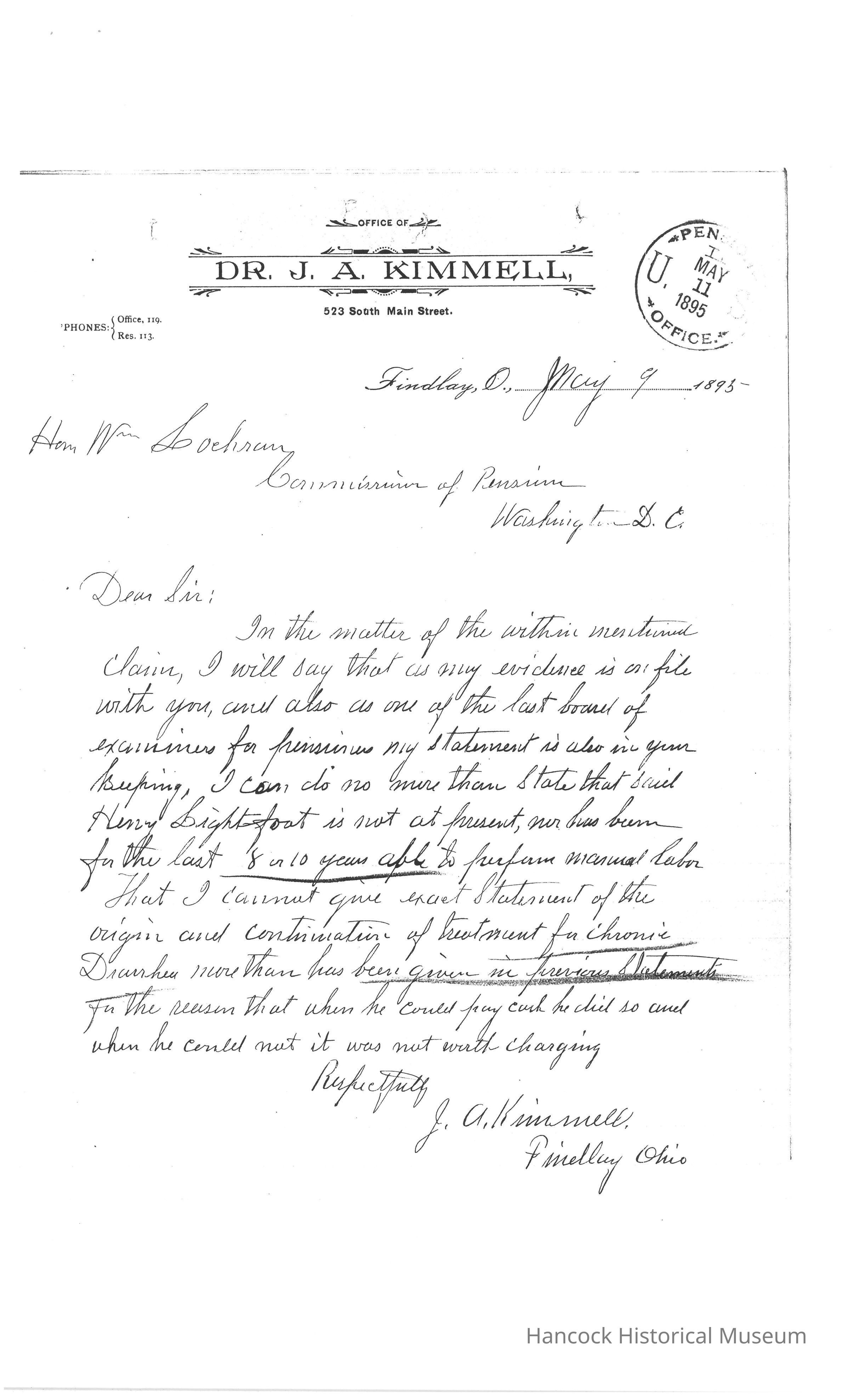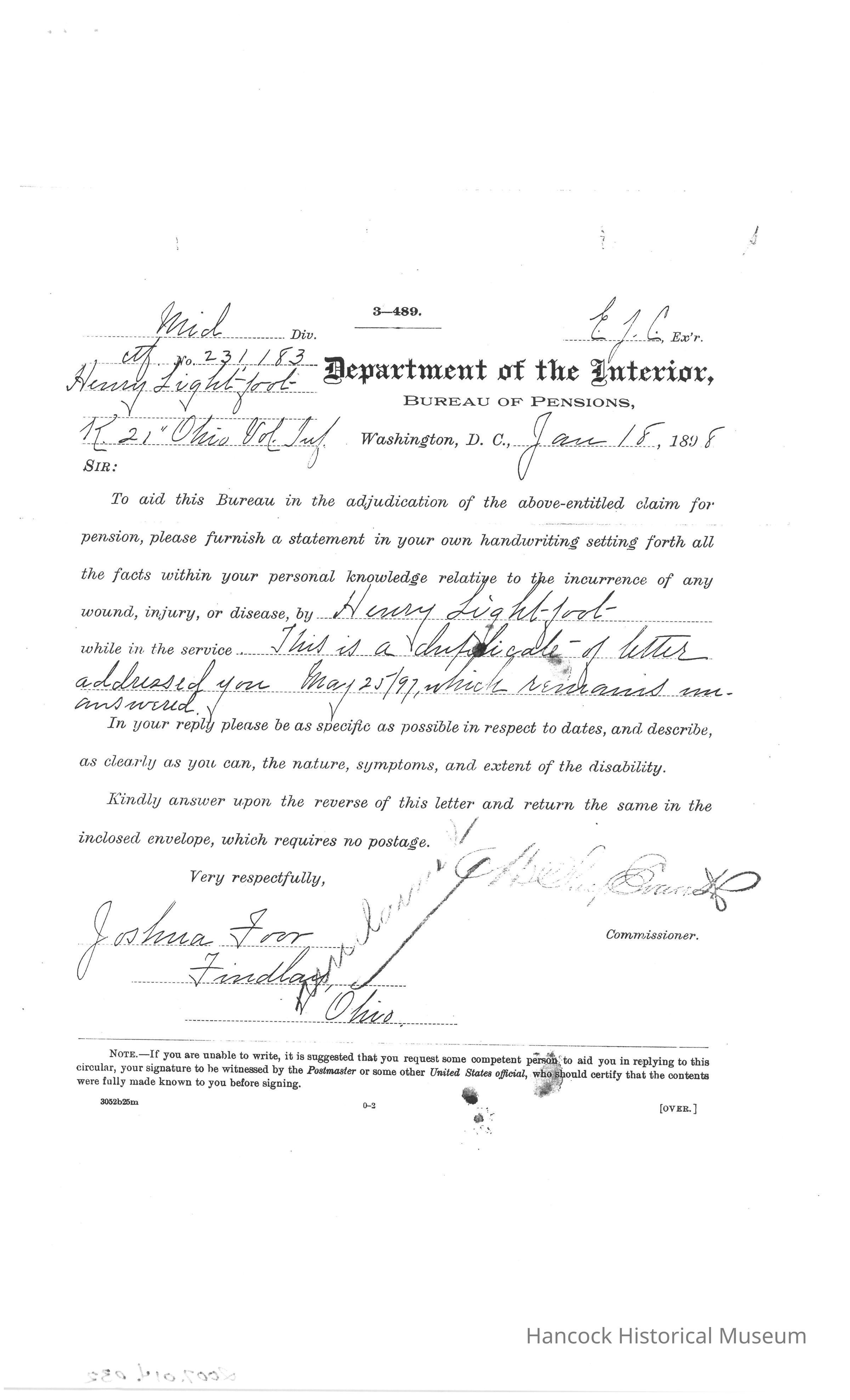 Bureau of Pensions records for Henry Lightfoot Civil War Pension Records for year of 1895.