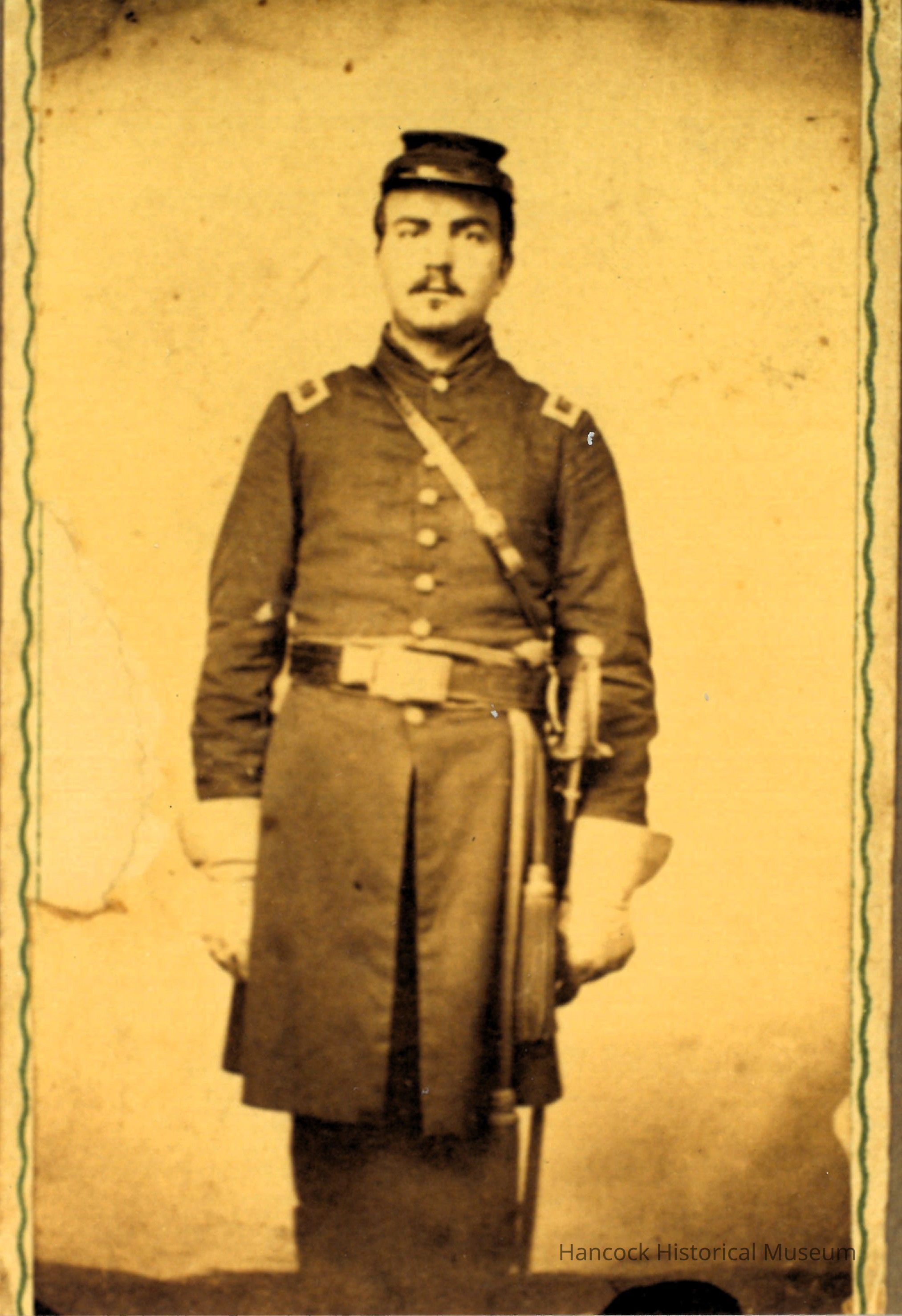 3 1/2 x 5 b/w photo of John Foreman of 1st Ohio Heavy Artillery in Civil War uniform w/sword. 2 copies