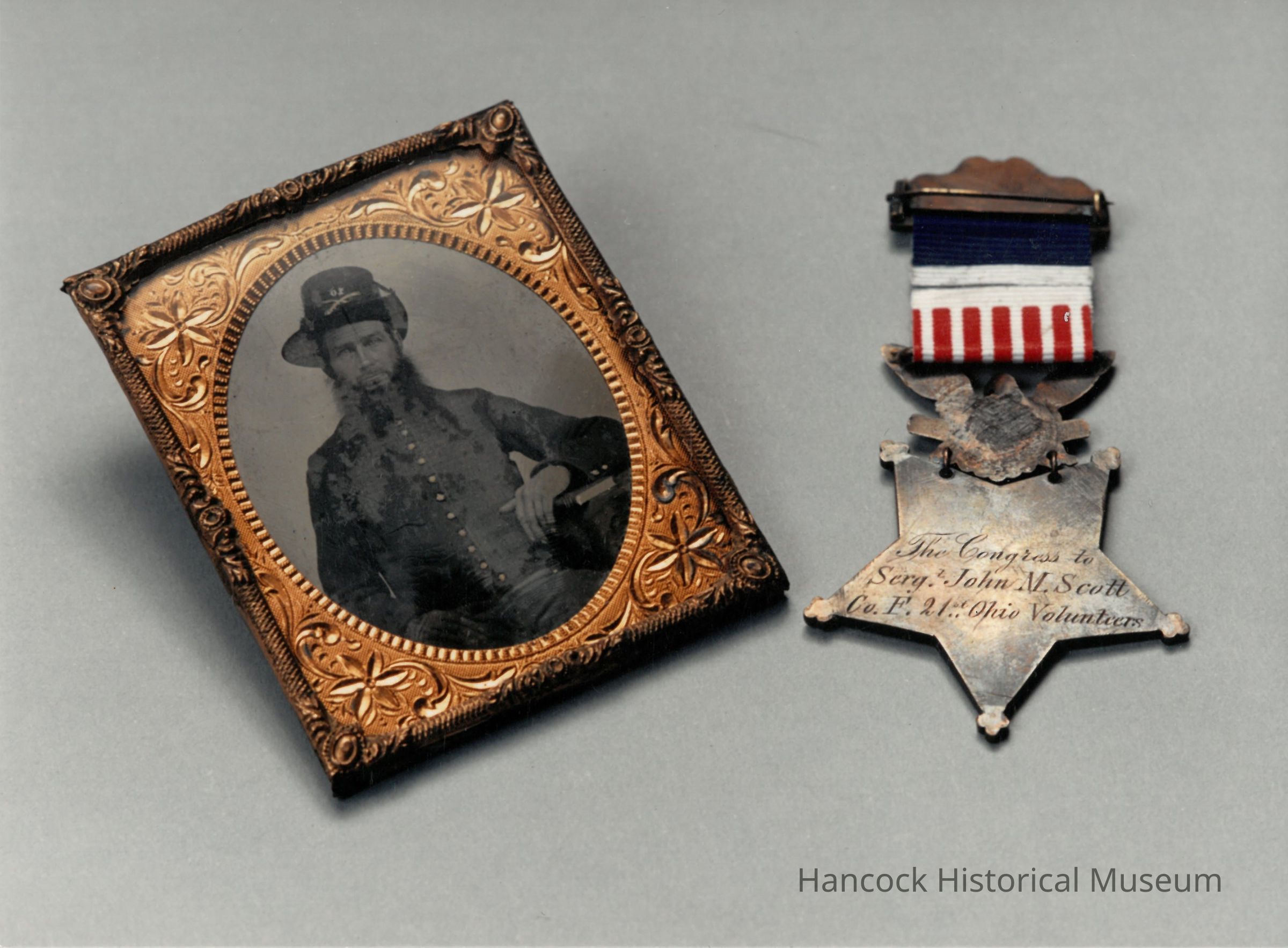 5"x7" color photos of John Scott's medal of honor with tin type