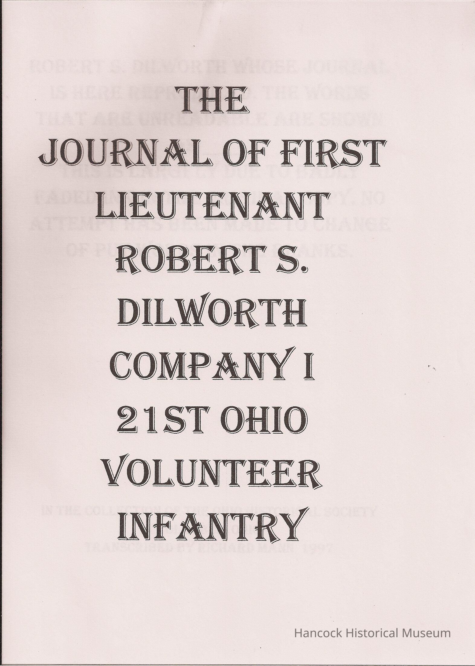 photocopy of journal of First Lieutenant Robert S. Dilworth, Co. I, 21st. Ohio Volunteer Infantry Also transcribed on a CD