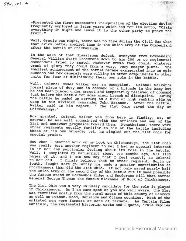 script for lecture by peter Cozzens on the 21st OVI. June 27, 1991Collection