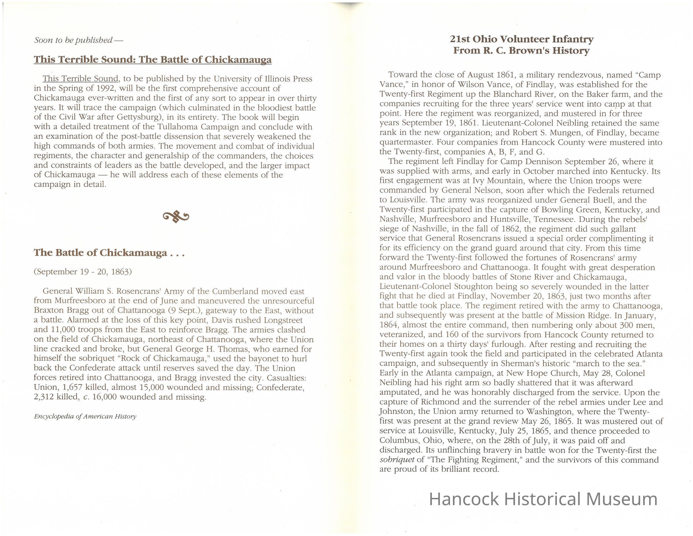 Civil War, Hancock Historical MuseumLexicon