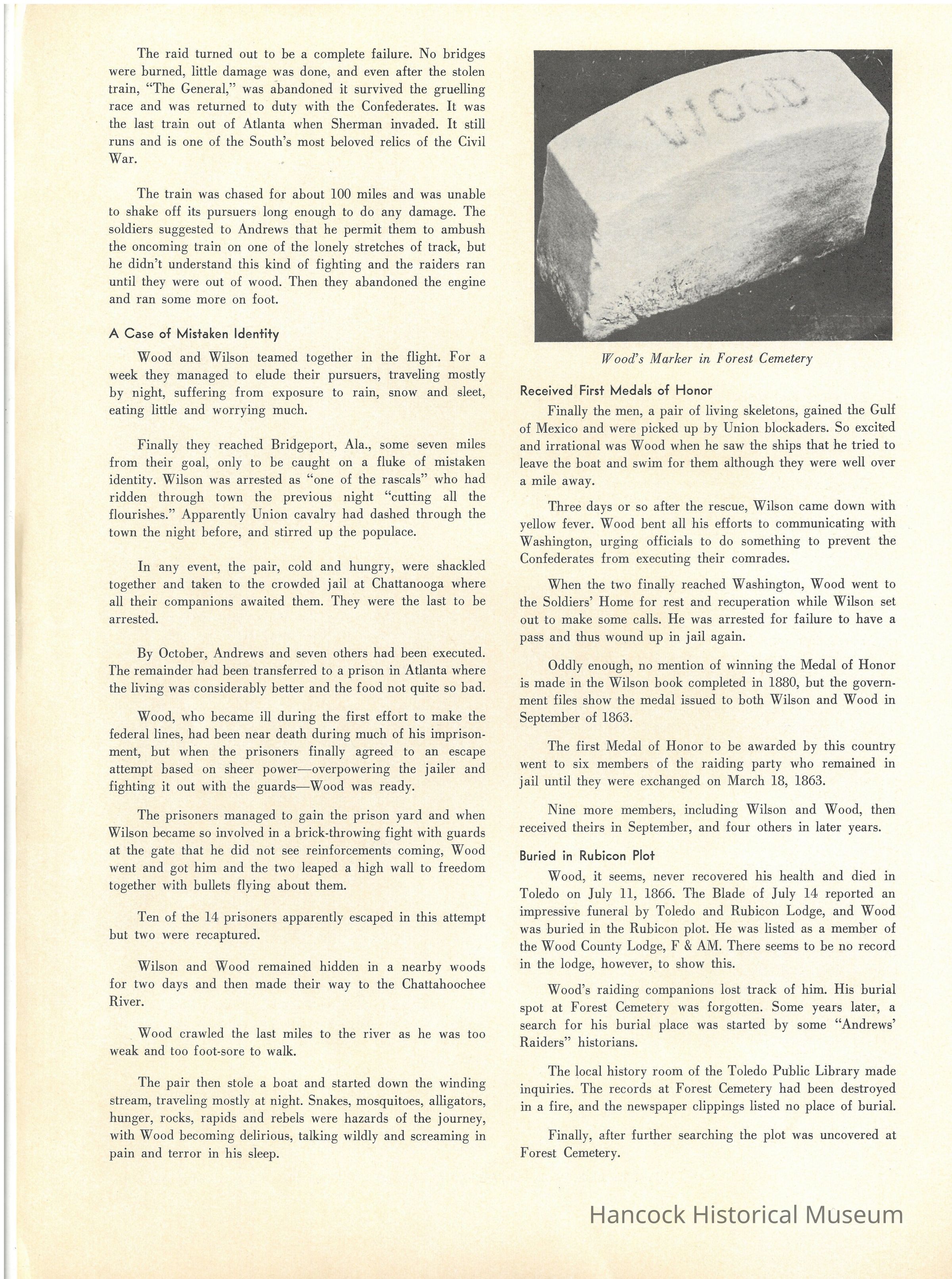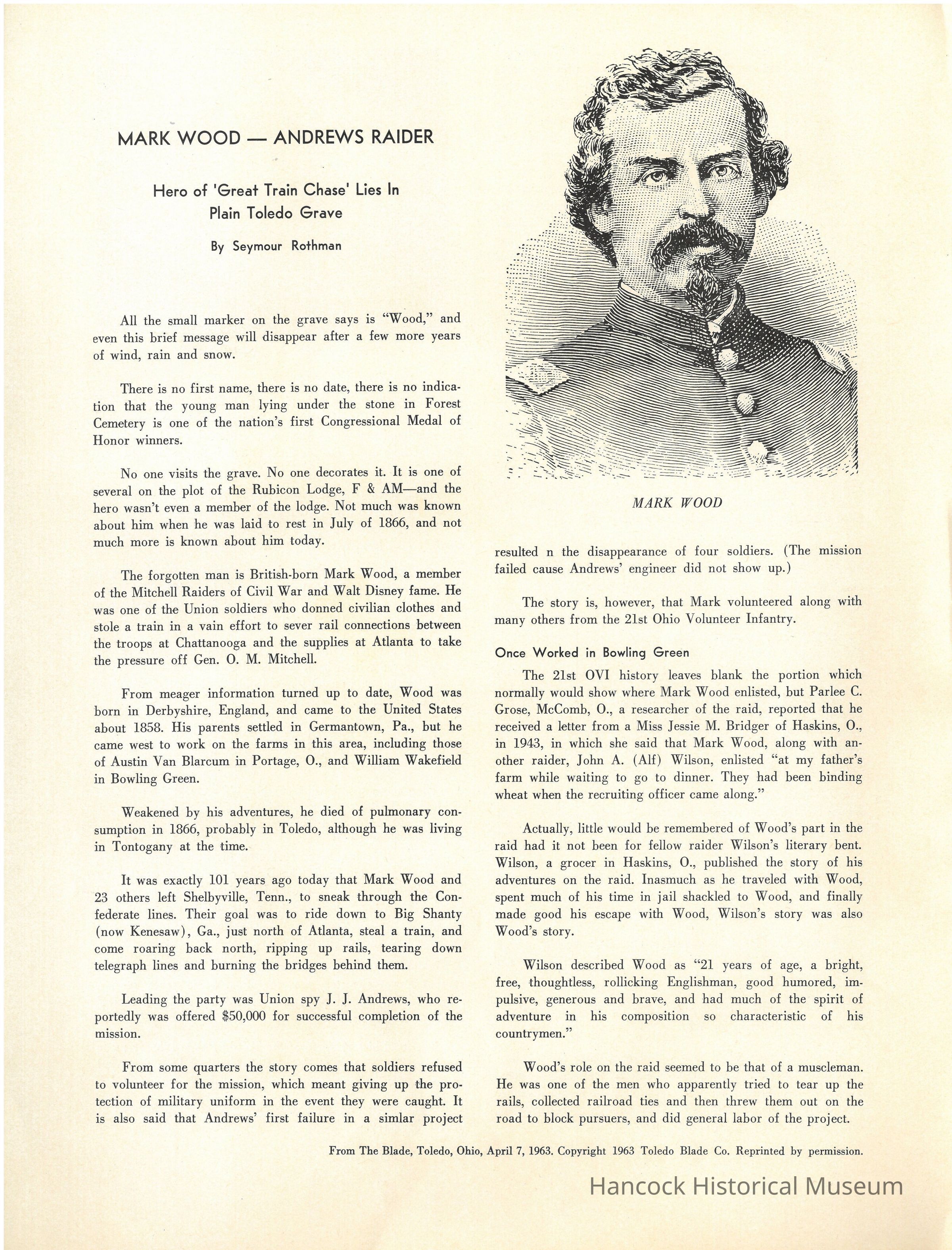 Article on Mark Wood, Andrews Raider from the Blade April 7, 1963Collection