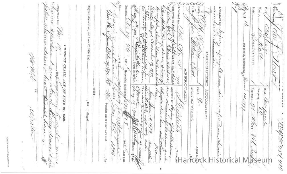 copies of military and pension records for John S. Hart, 21st O.V.I., Co D