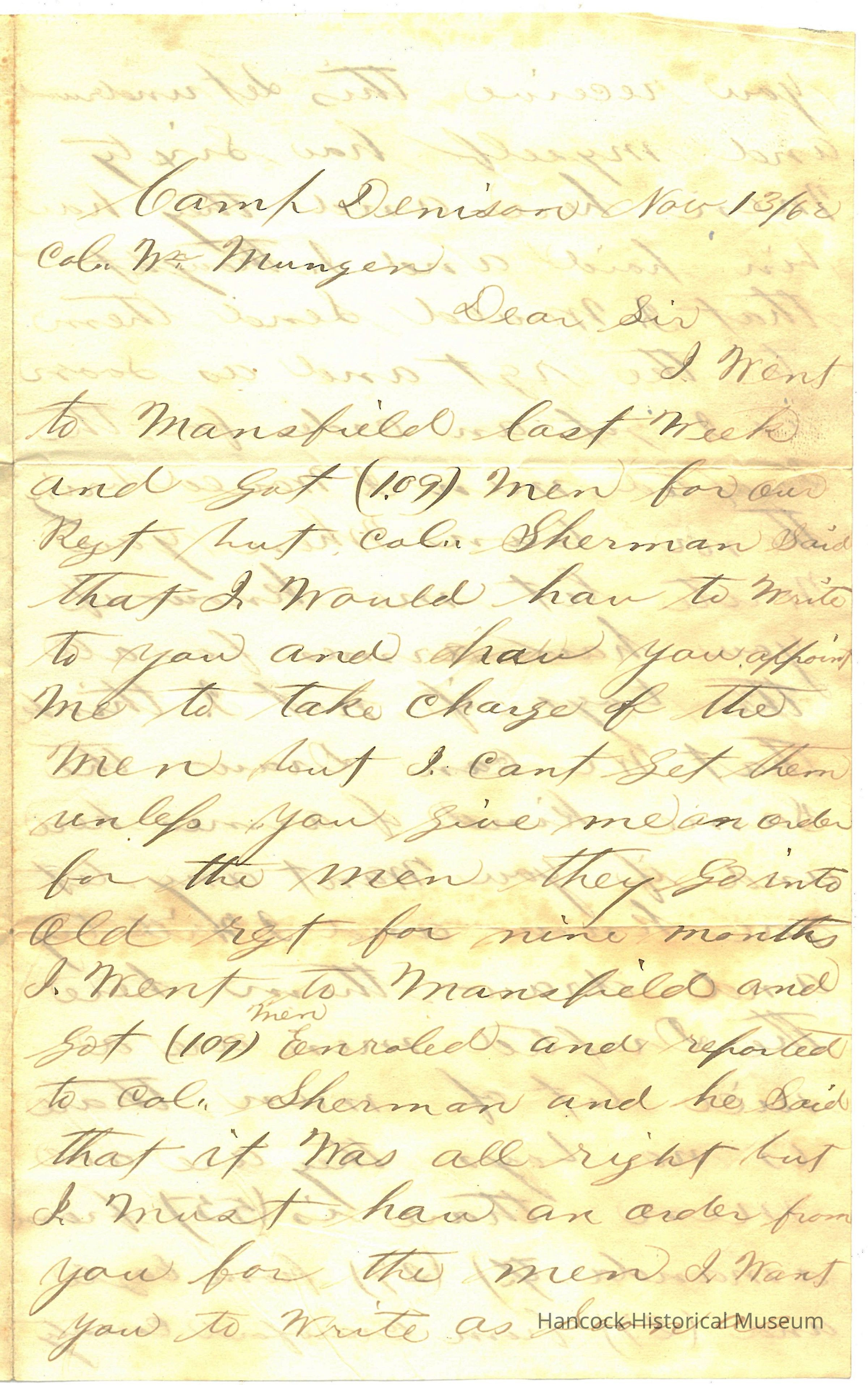 Letter to Colonel William Mungen from lieutenant John Wheeler during the Civil War