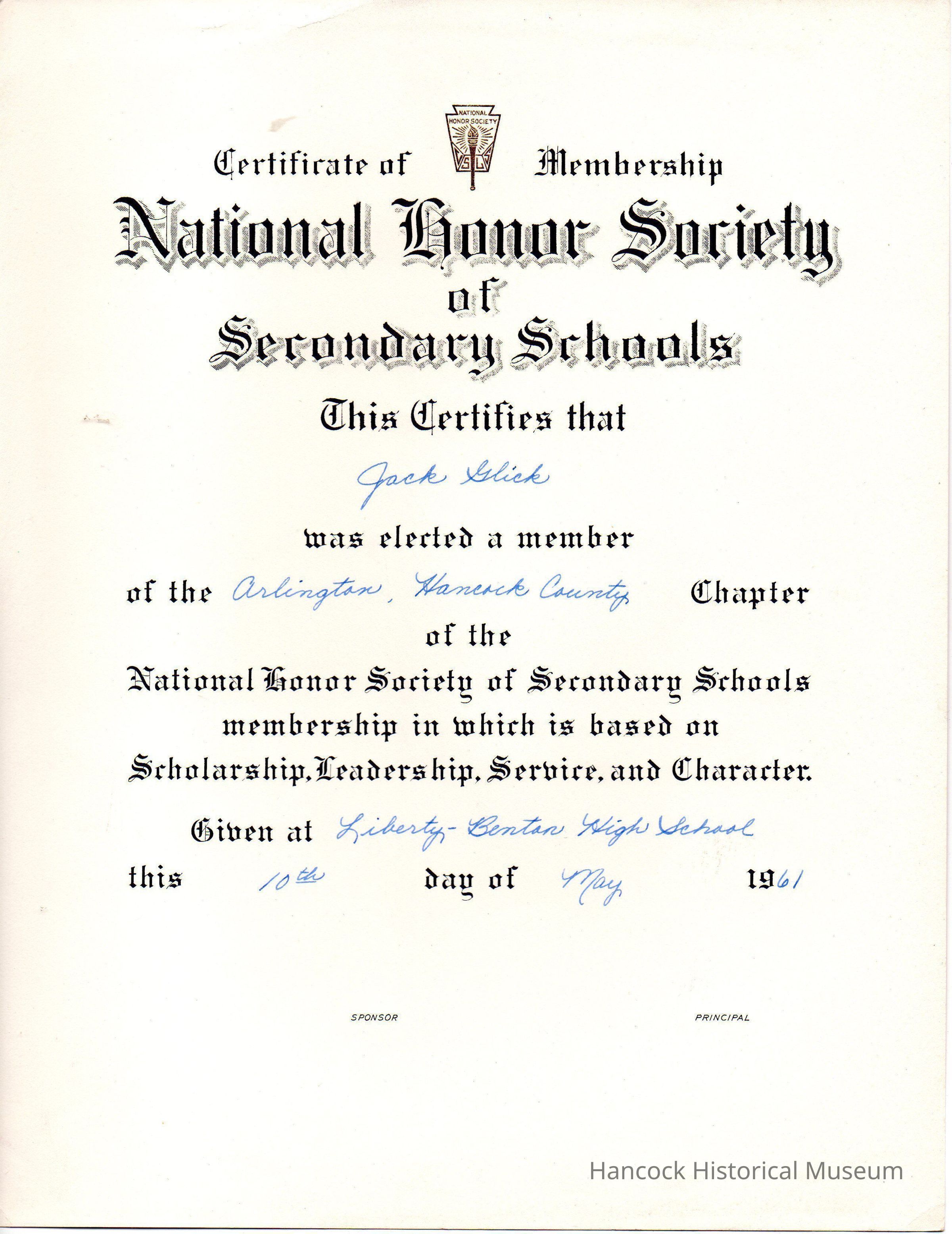 National Honor Society, Jack GlickEntry/Object ID