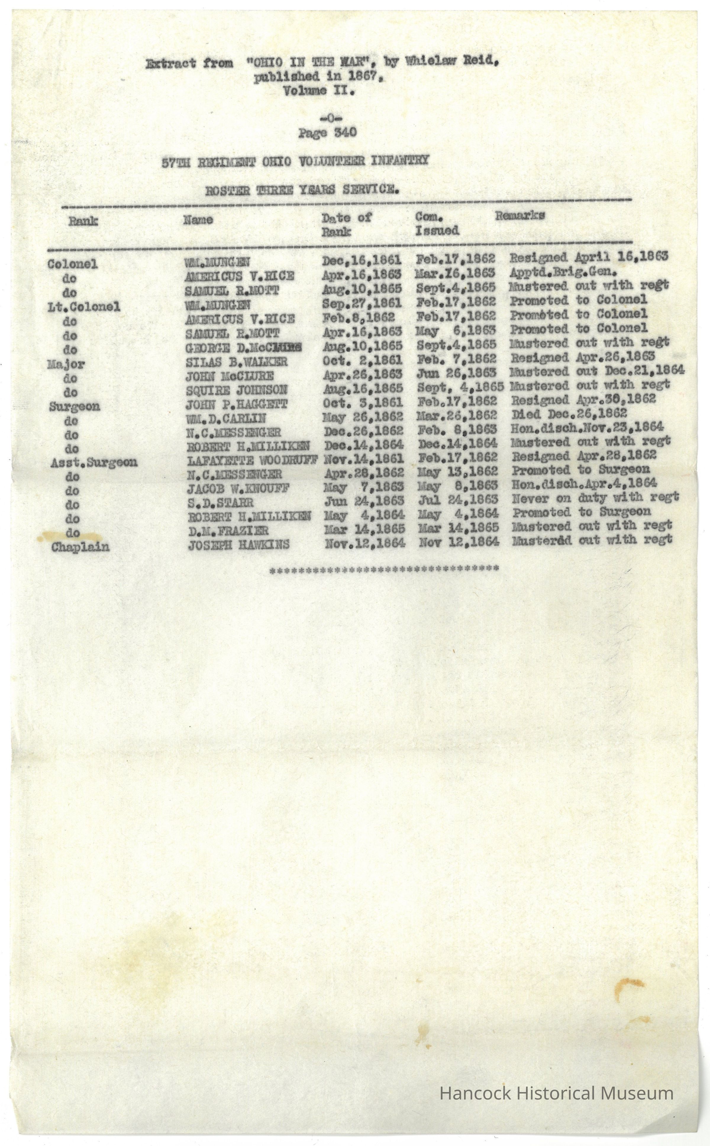 Roster of the 57thCollection