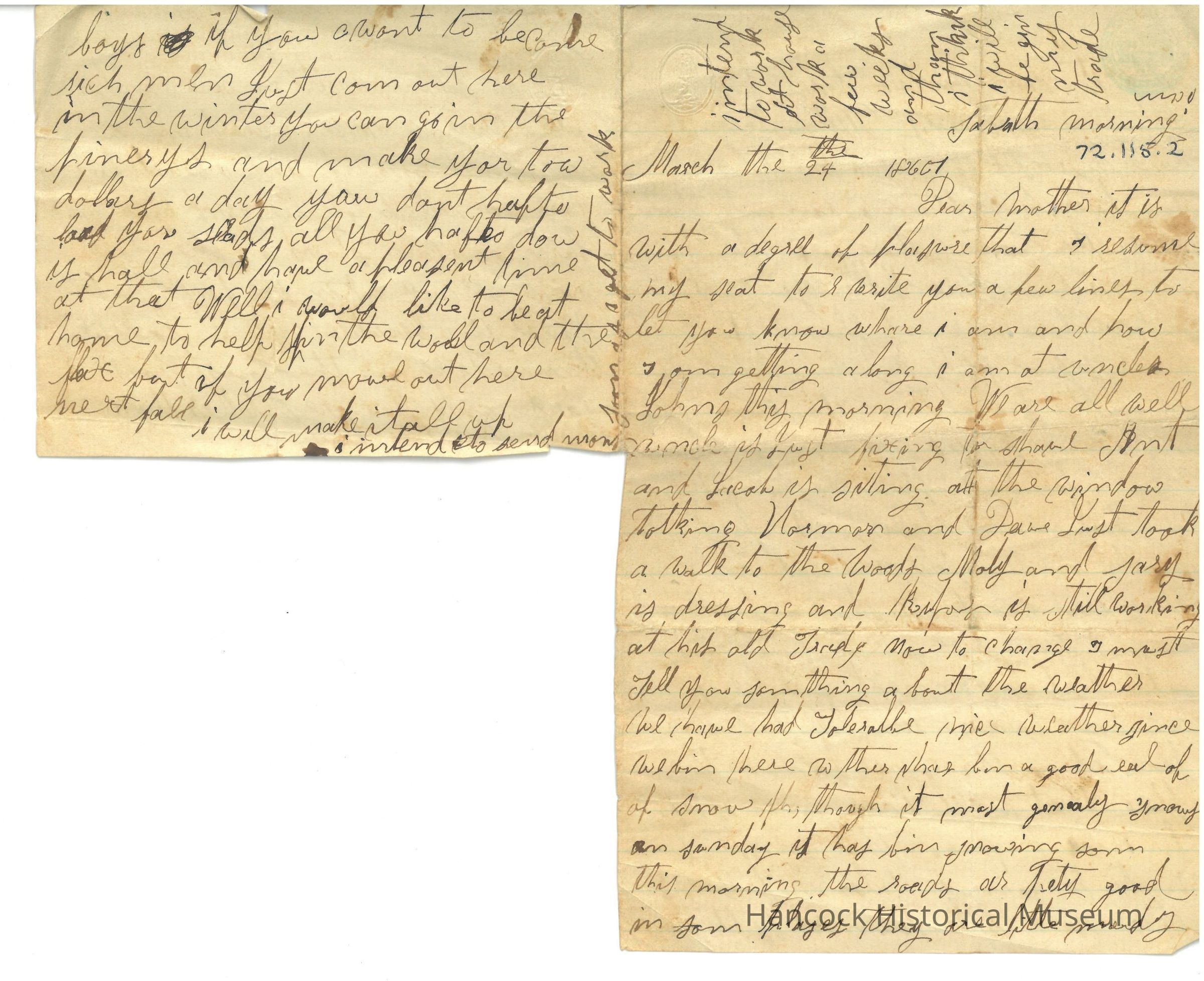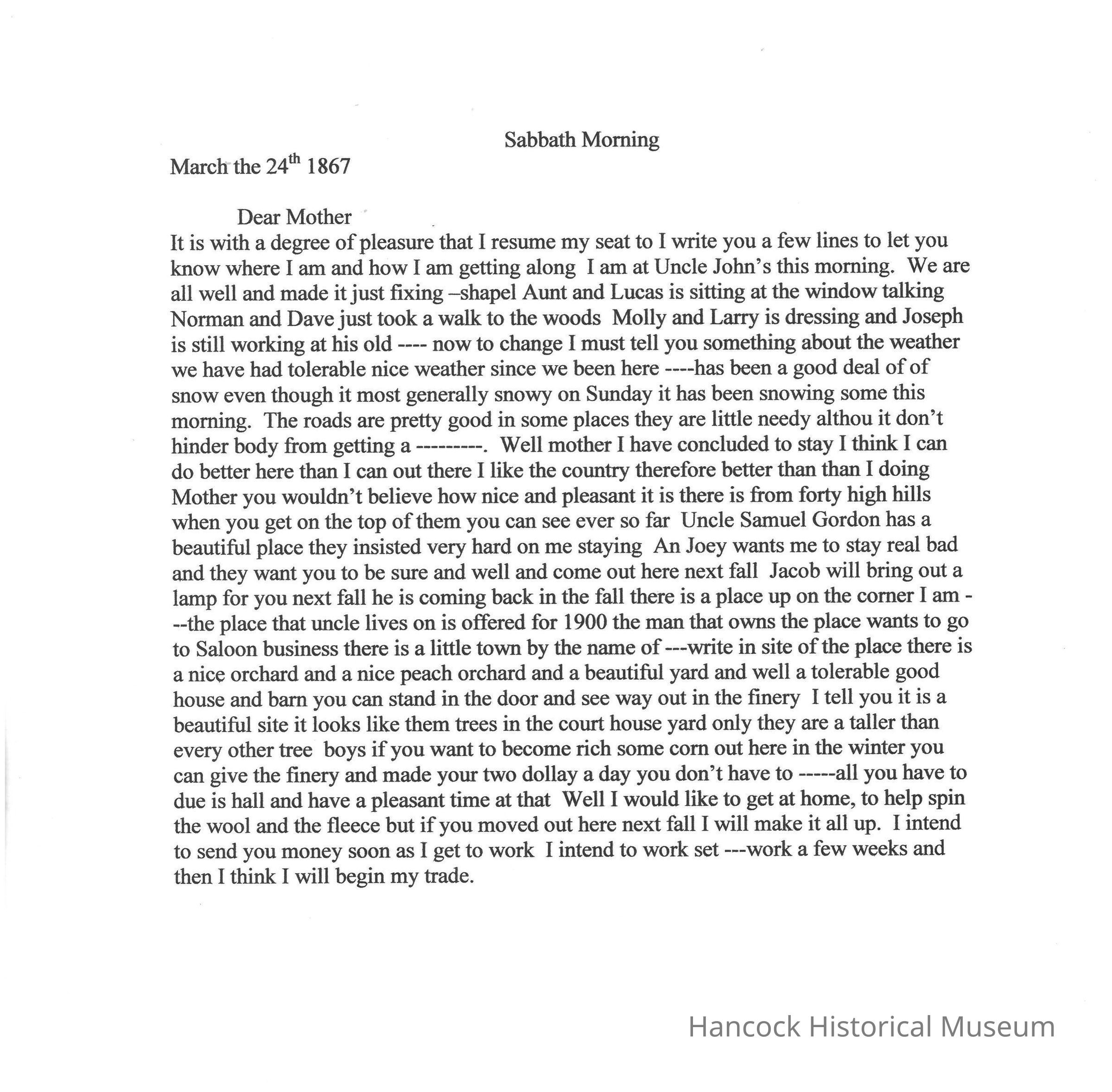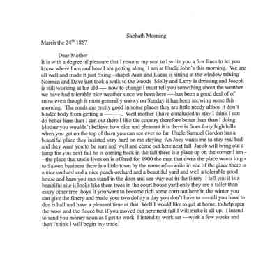 Letter to his Mother from Henry Oman dated Mar 24, 1867.