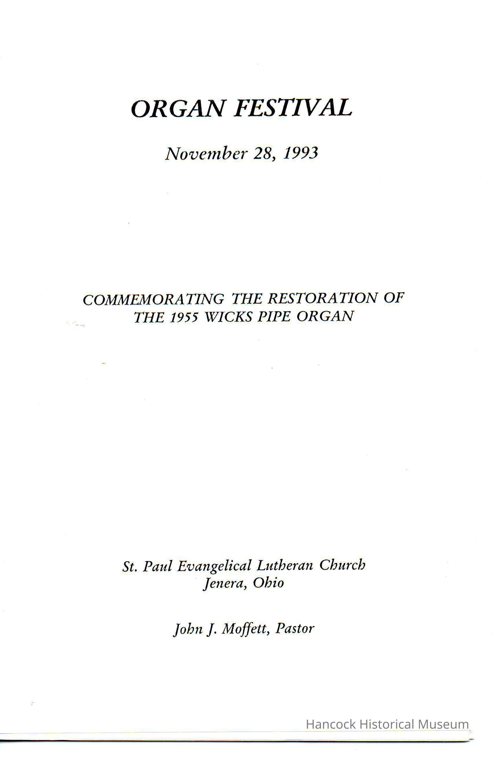 Organ Festival, 1993Entry/Object ID