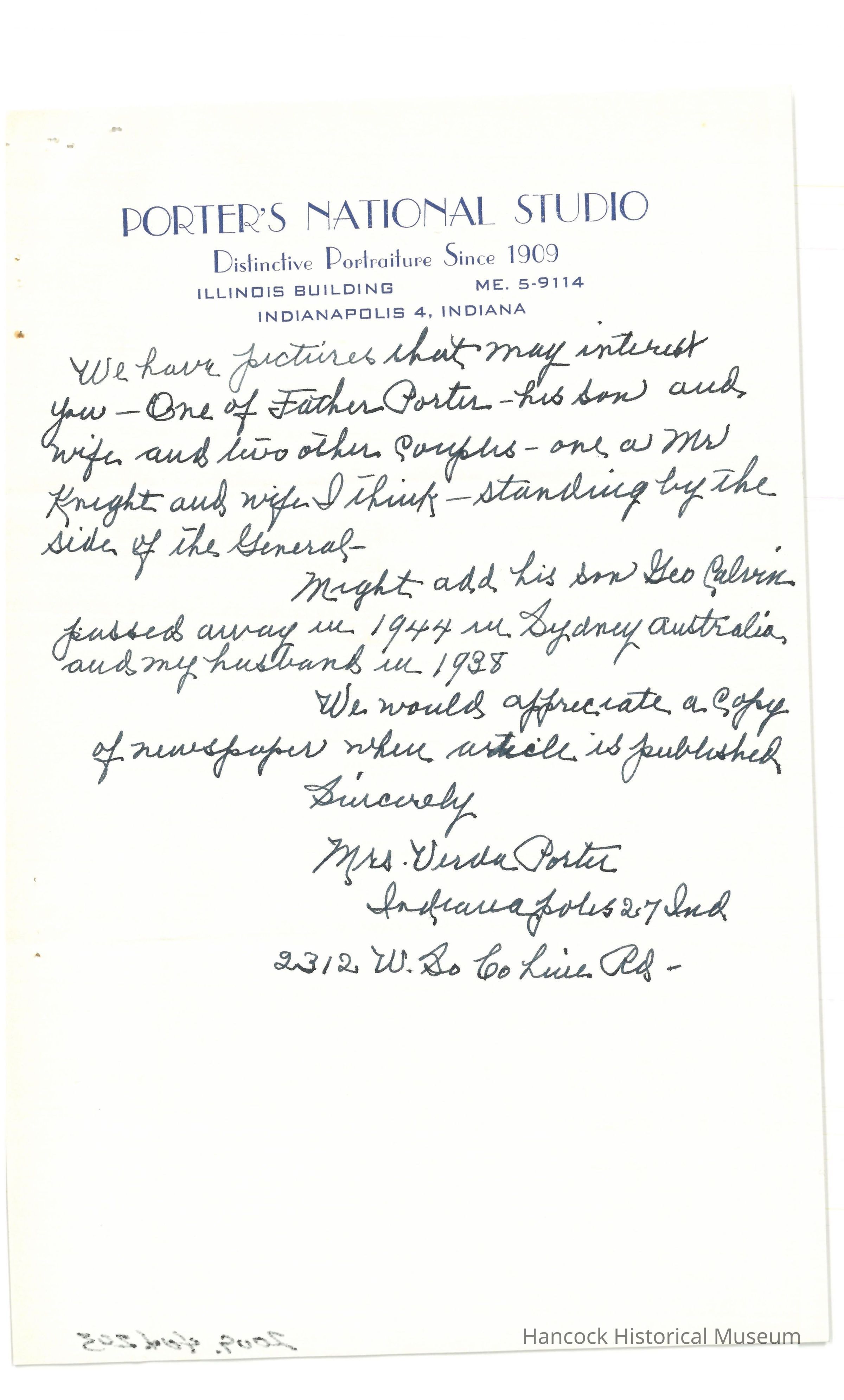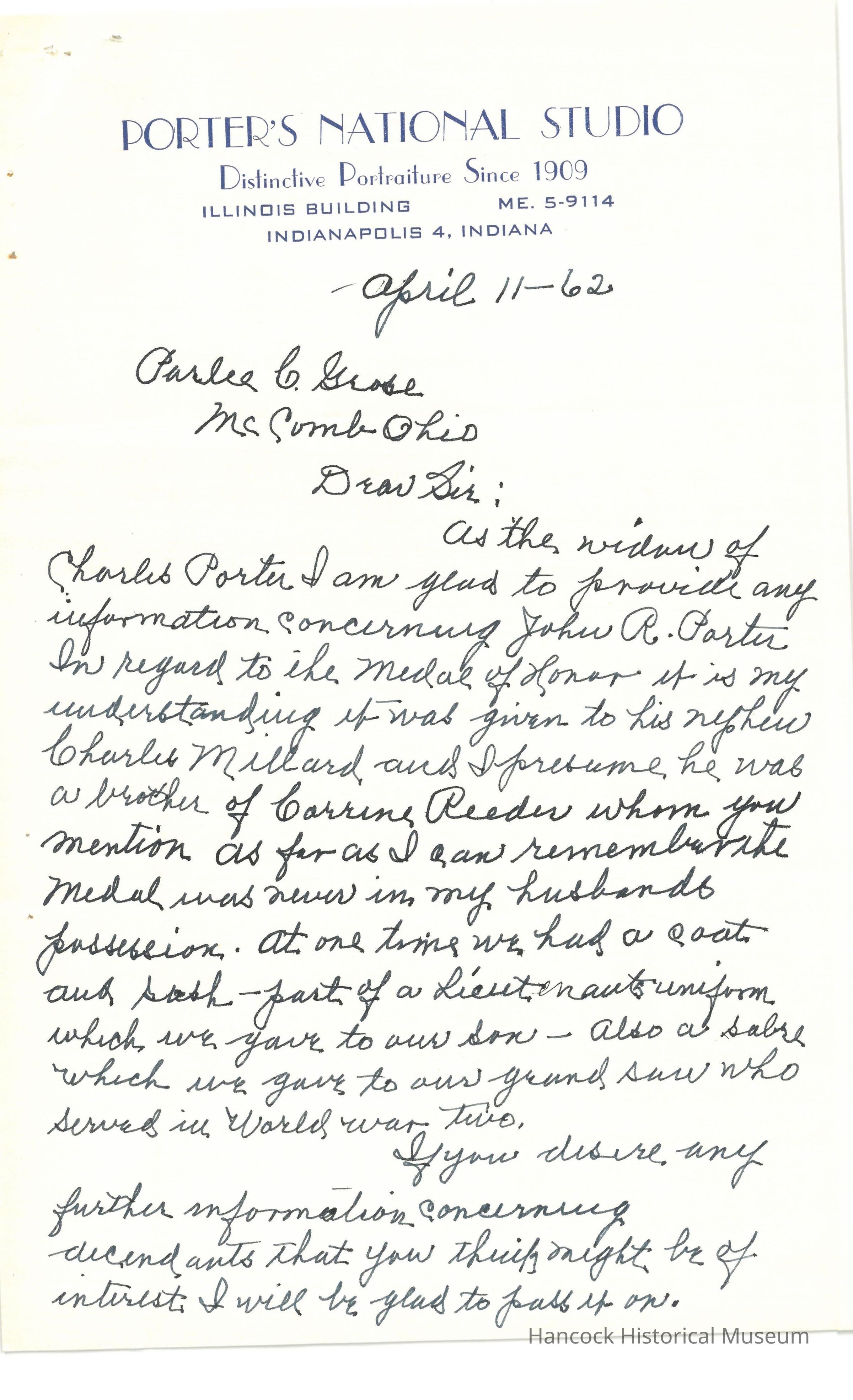 Letter from Verda Porter to Parlee Grose dated Apr 11, 1962.