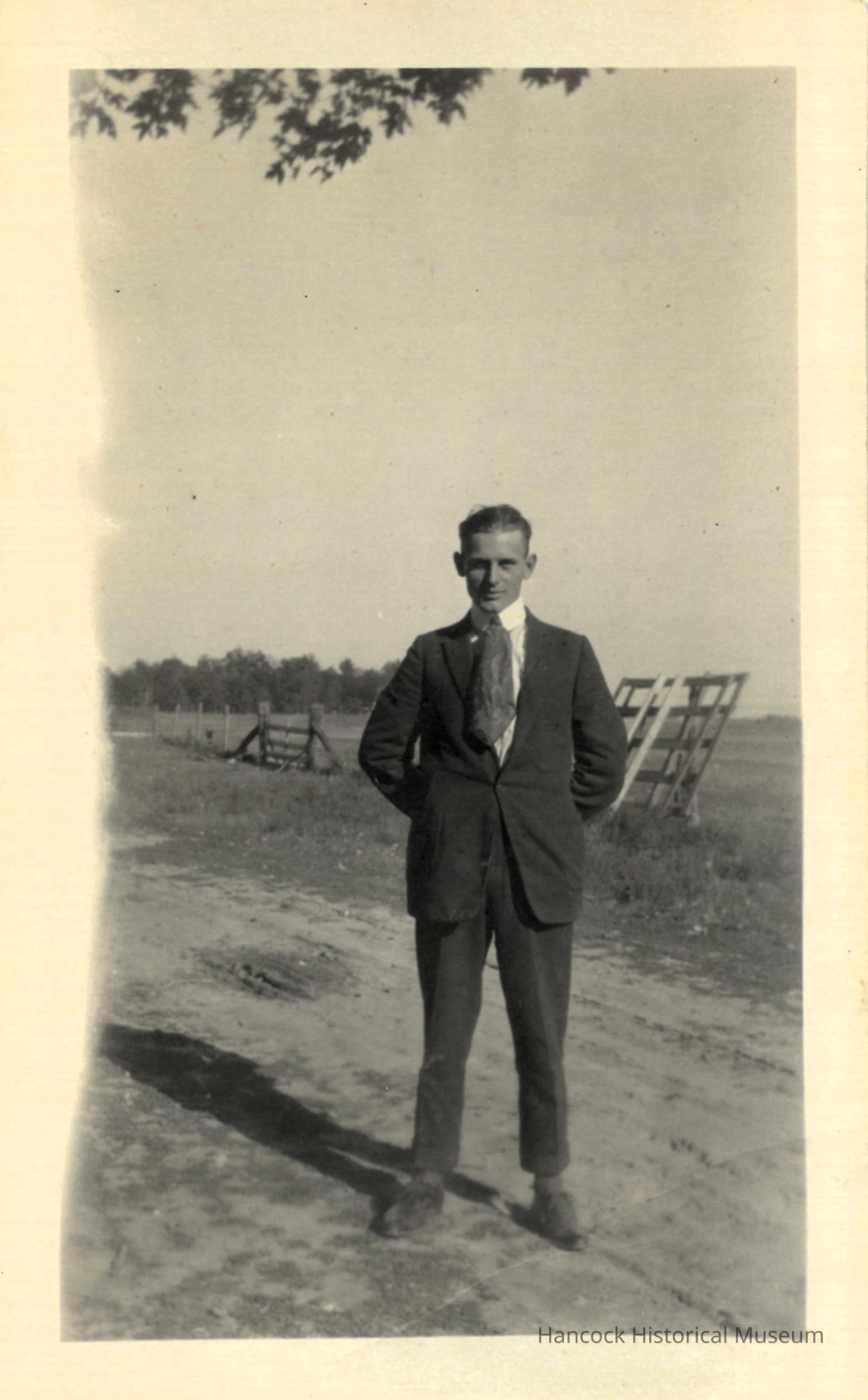 black and white photograph Identified as Gladys Kroske's High School boyfriend Roy Bibler before he left to join the Army at Camp Sherman Sunday September 1, 1918