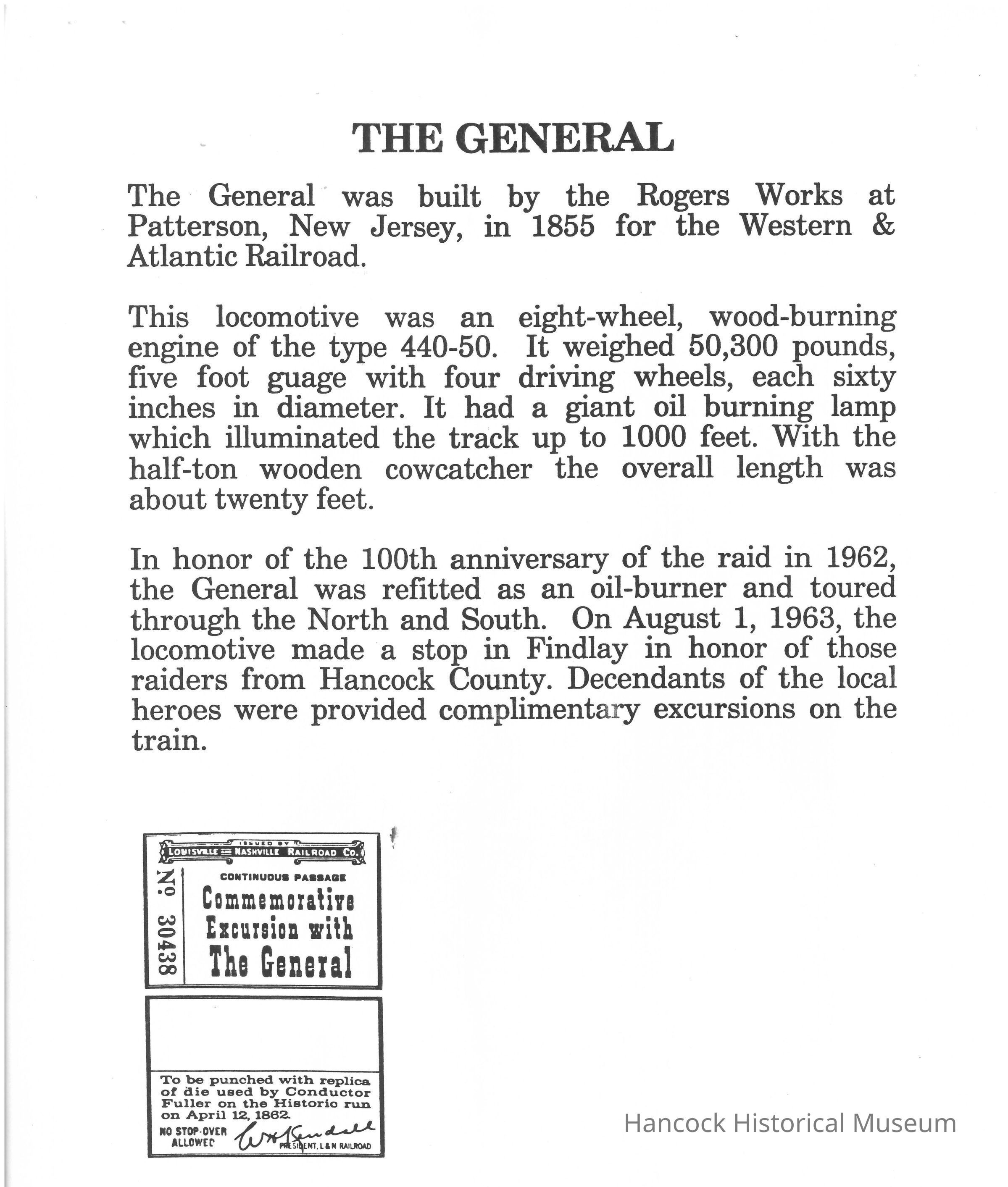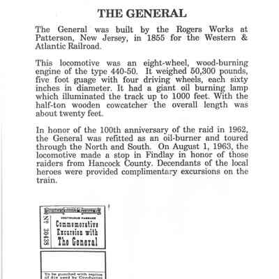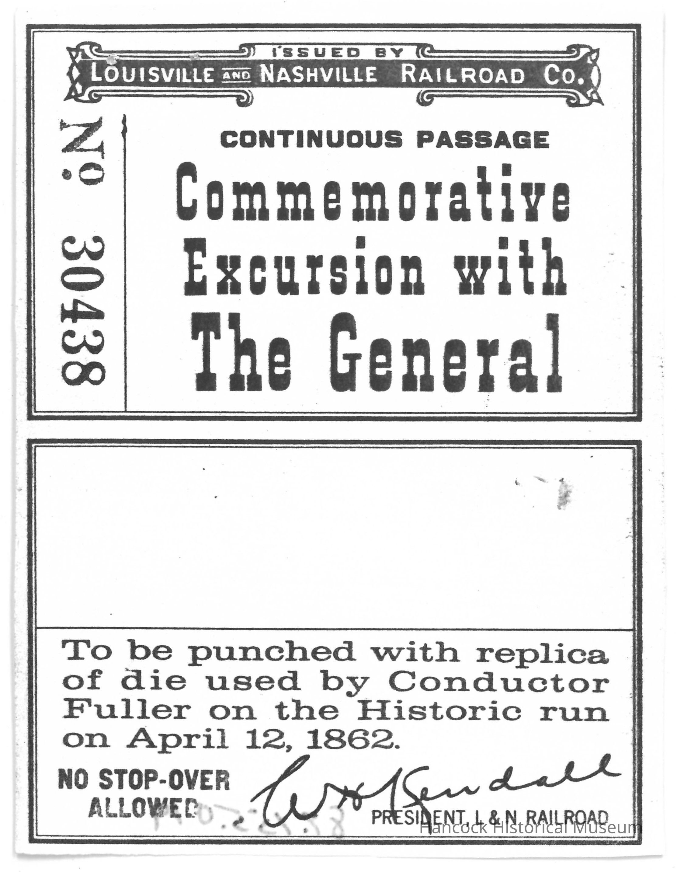 a facsimile of the ticket on the General for the commemorative Excursion, from the Andrews Raiders.Collection