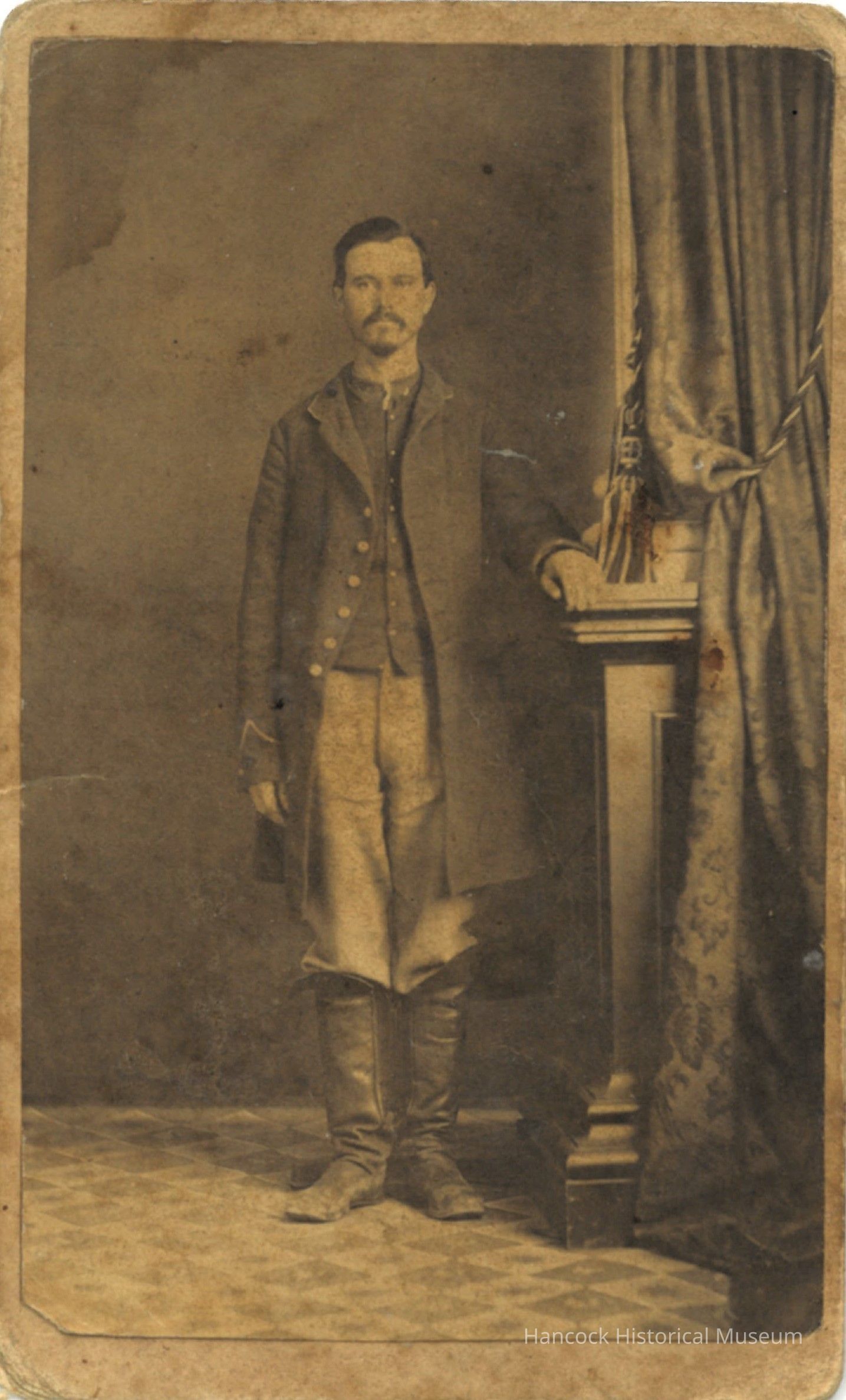 photograph of an unidentified Civil War Soldier. Taken by "Deck & Happersett, Photographers, Kenton, o"