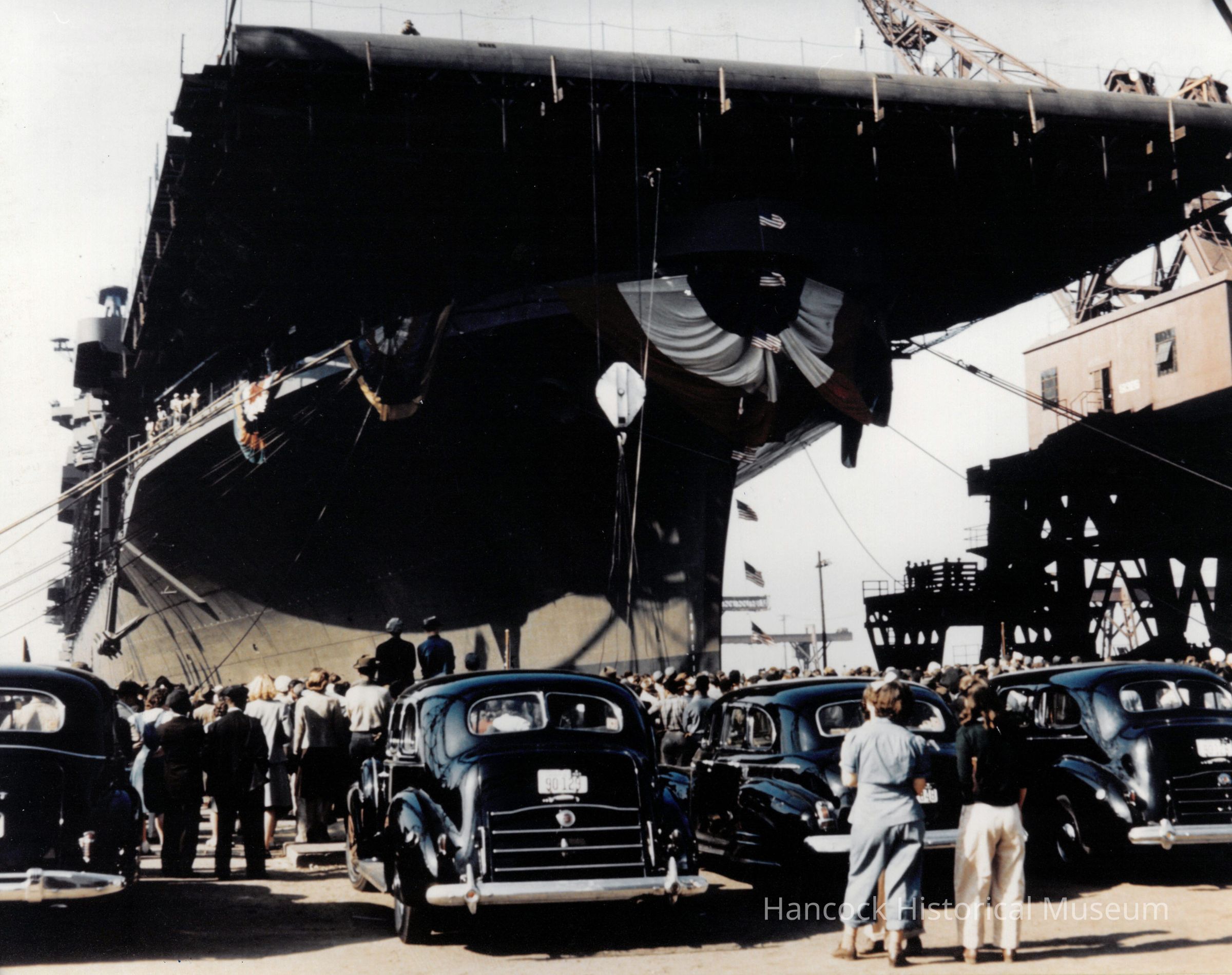 8 x 10 color photo of launching of USS Franklin Oct 14, 1943.