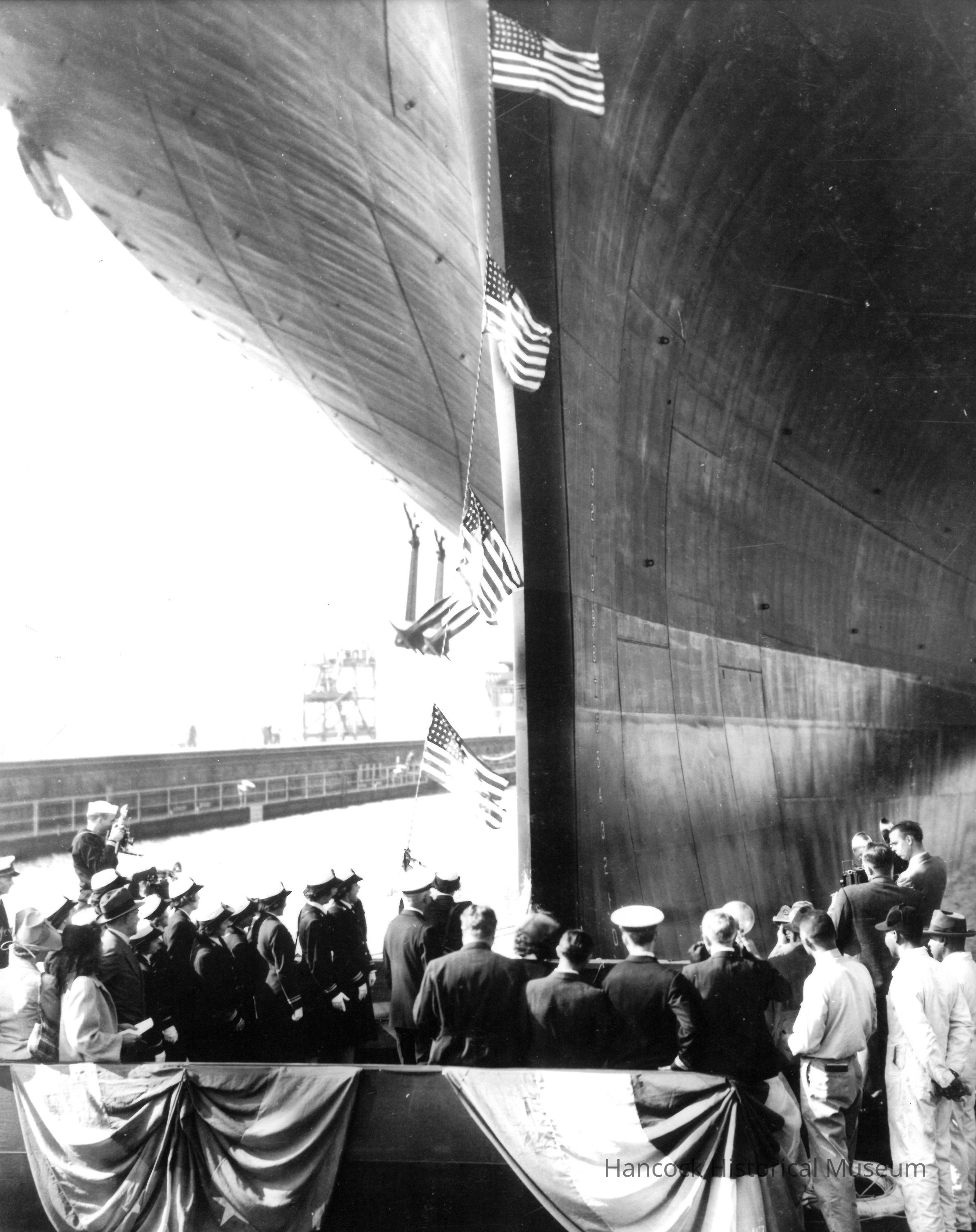 8 x 10 b/w photo of USS Franklin being launched Oct 14, 1943.