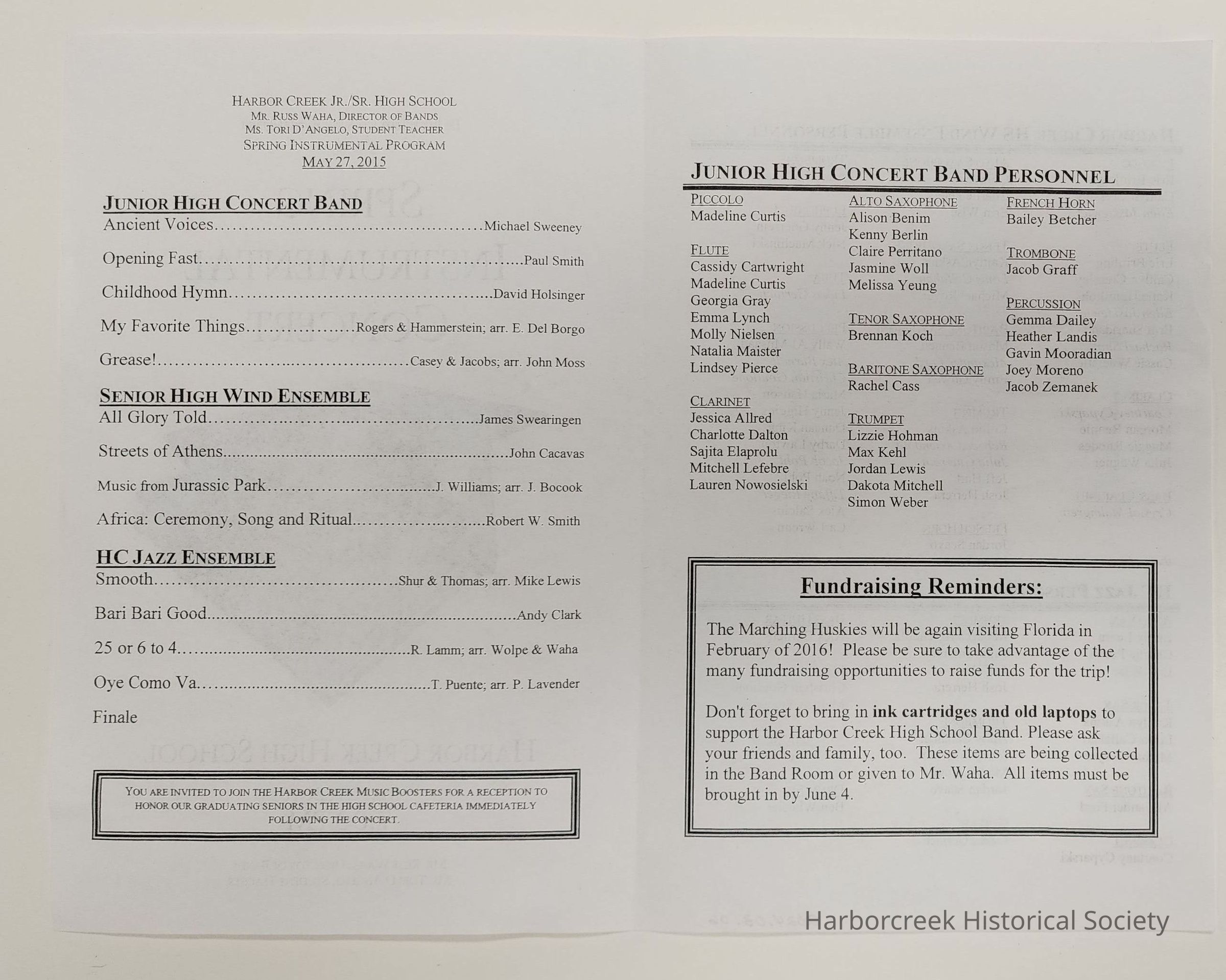 Harbor Creek High School Music Department Spring Instrumental Concert May 27, 2015 at Harbor Creek High School, with Mr. Russ Waha, Director of Bands and Ms. Tori D'Angelo, Student Teacher.Collection