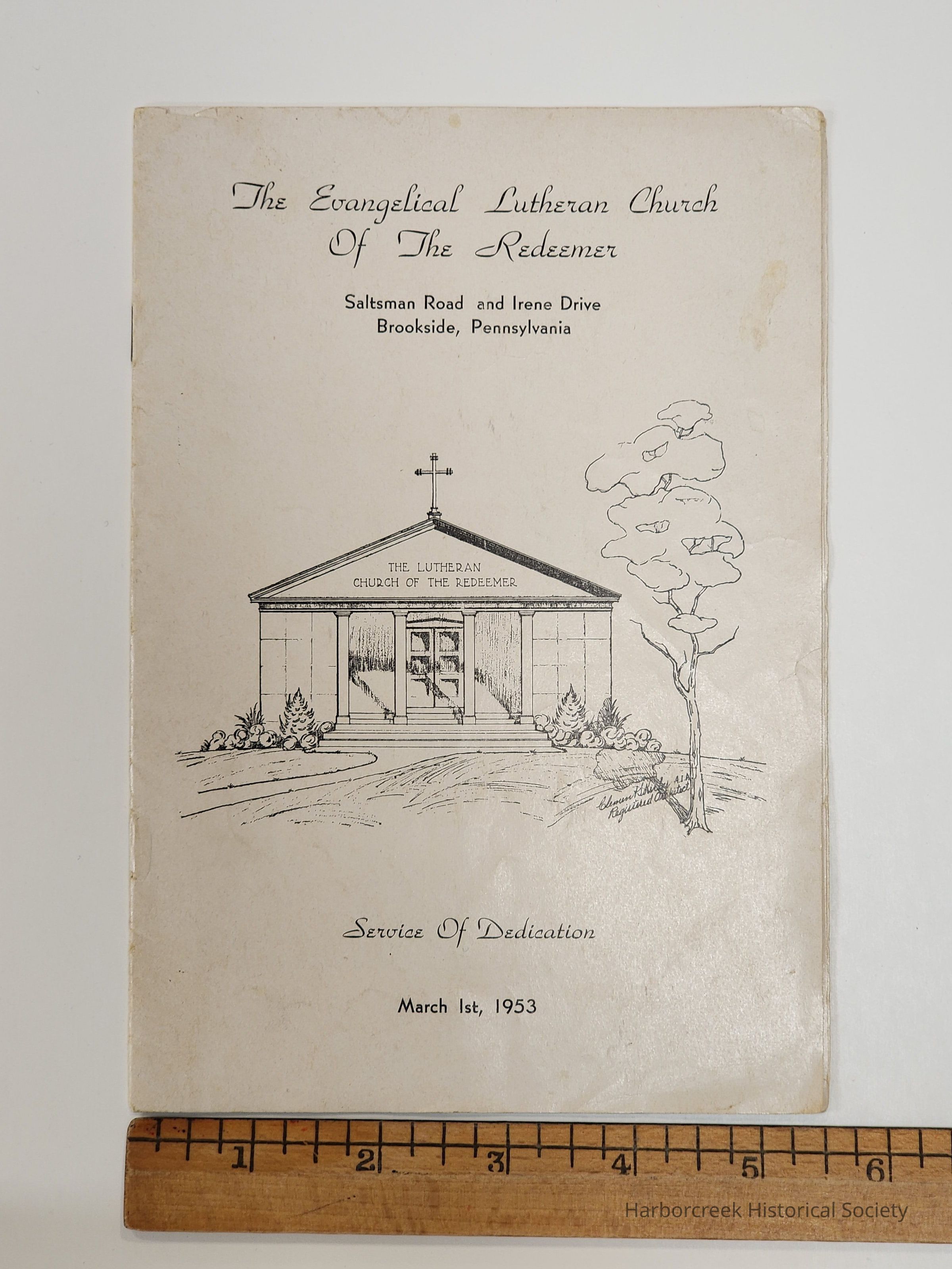 The Evangelical Lutheran Church of the Redeemer dedication program. Church located at Saltsman Road and Irene Drive, Harborcreek.Collection