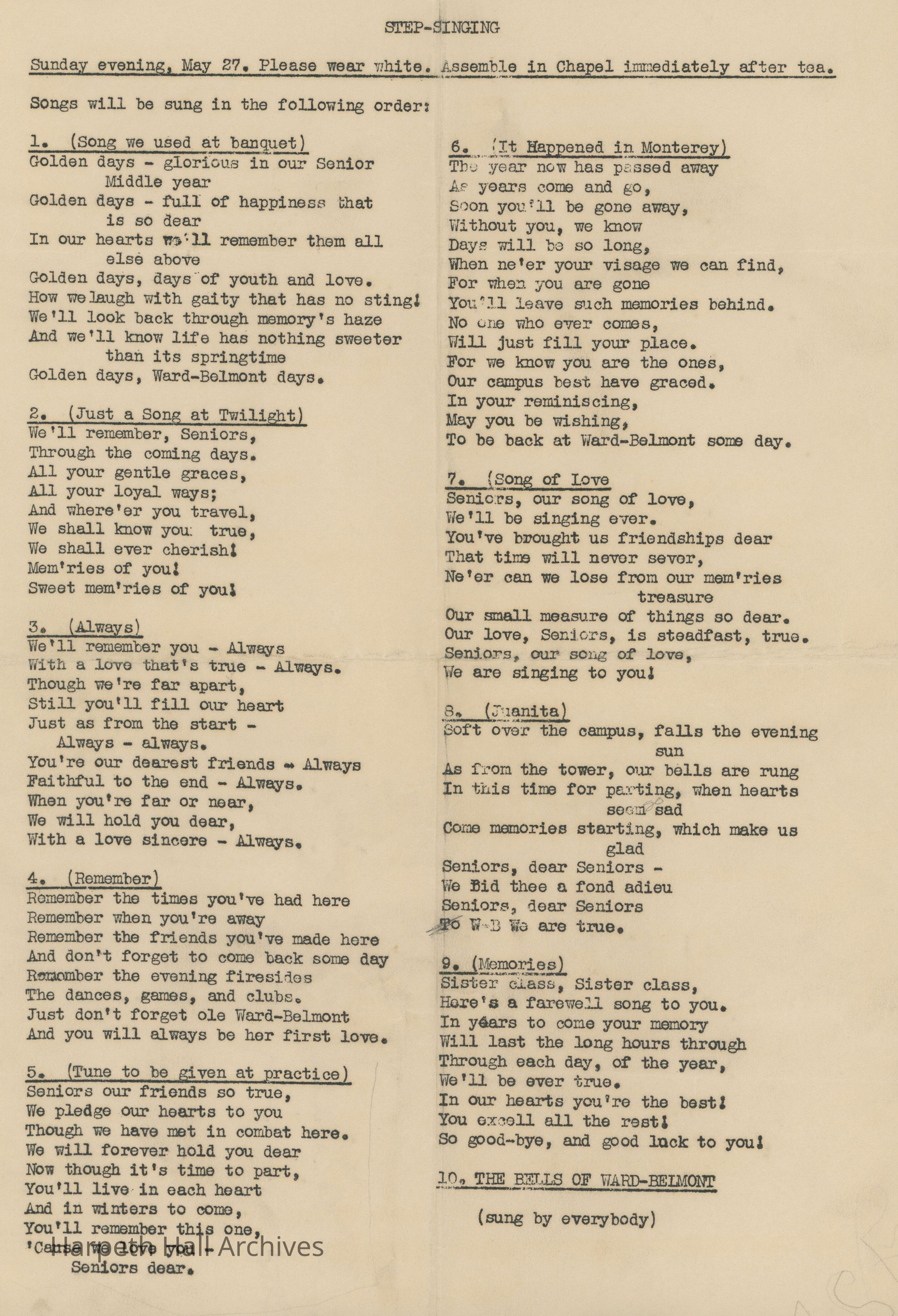 The Ward-Belmont step-singing songs for the senior-middle students to sing.Collection