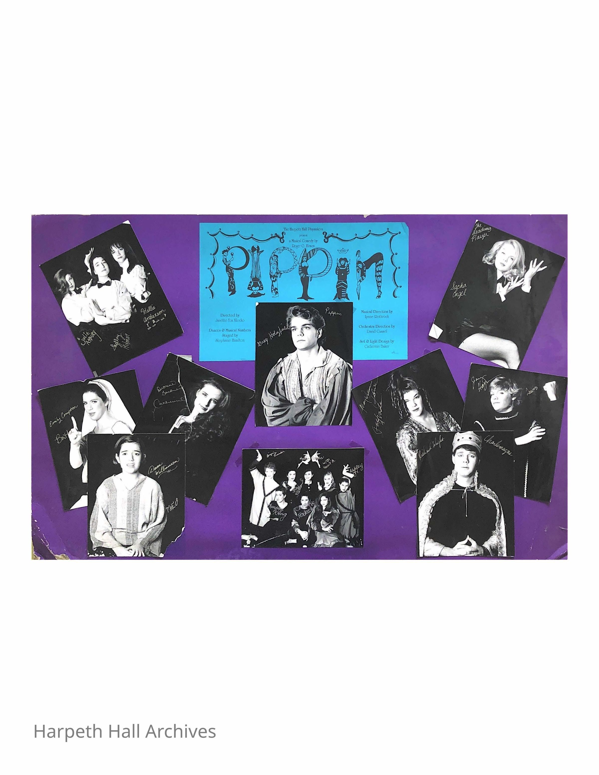 The cast board for the showing of Pippin put on by the Harpeth Hall Playmakers in the early 1990s.