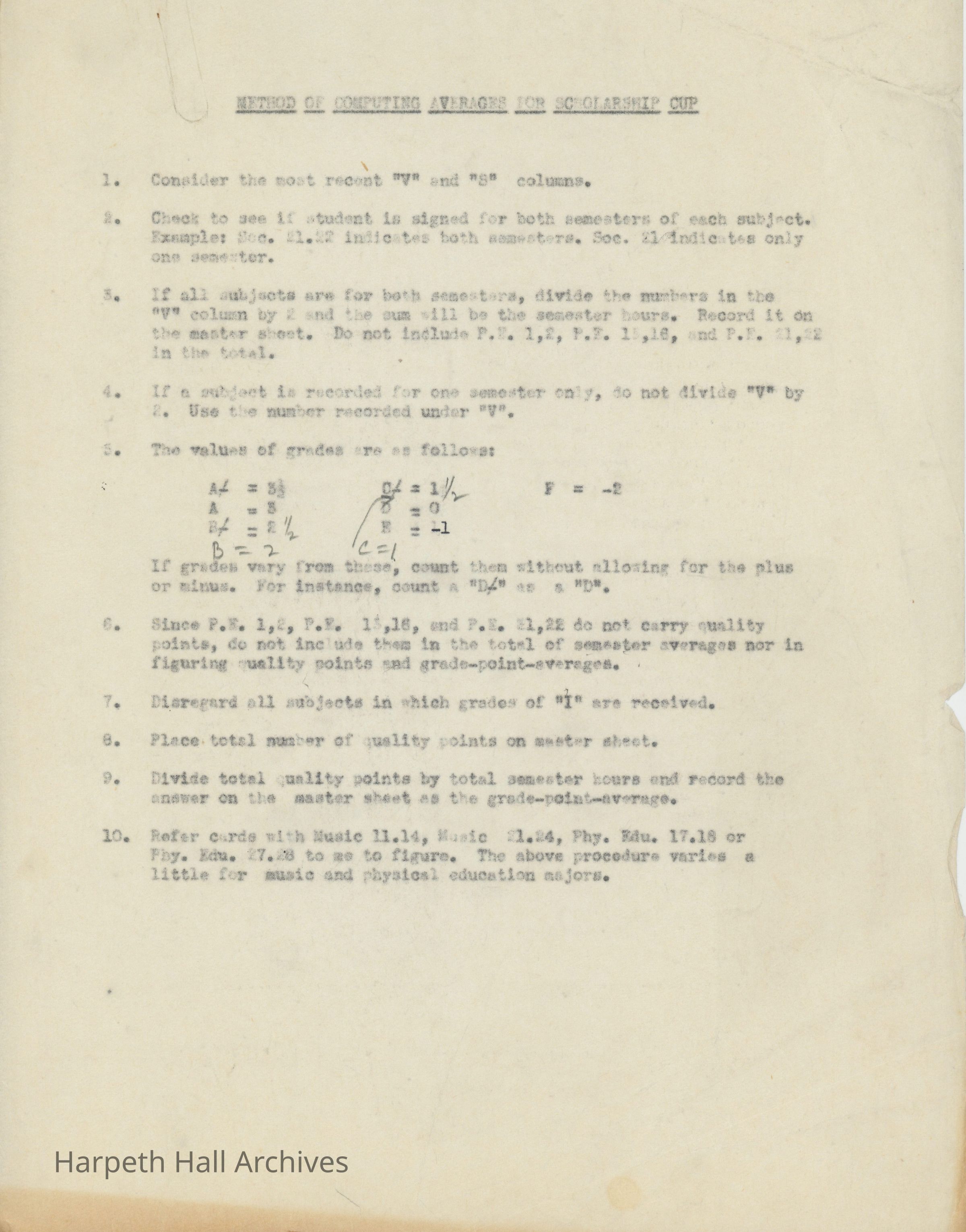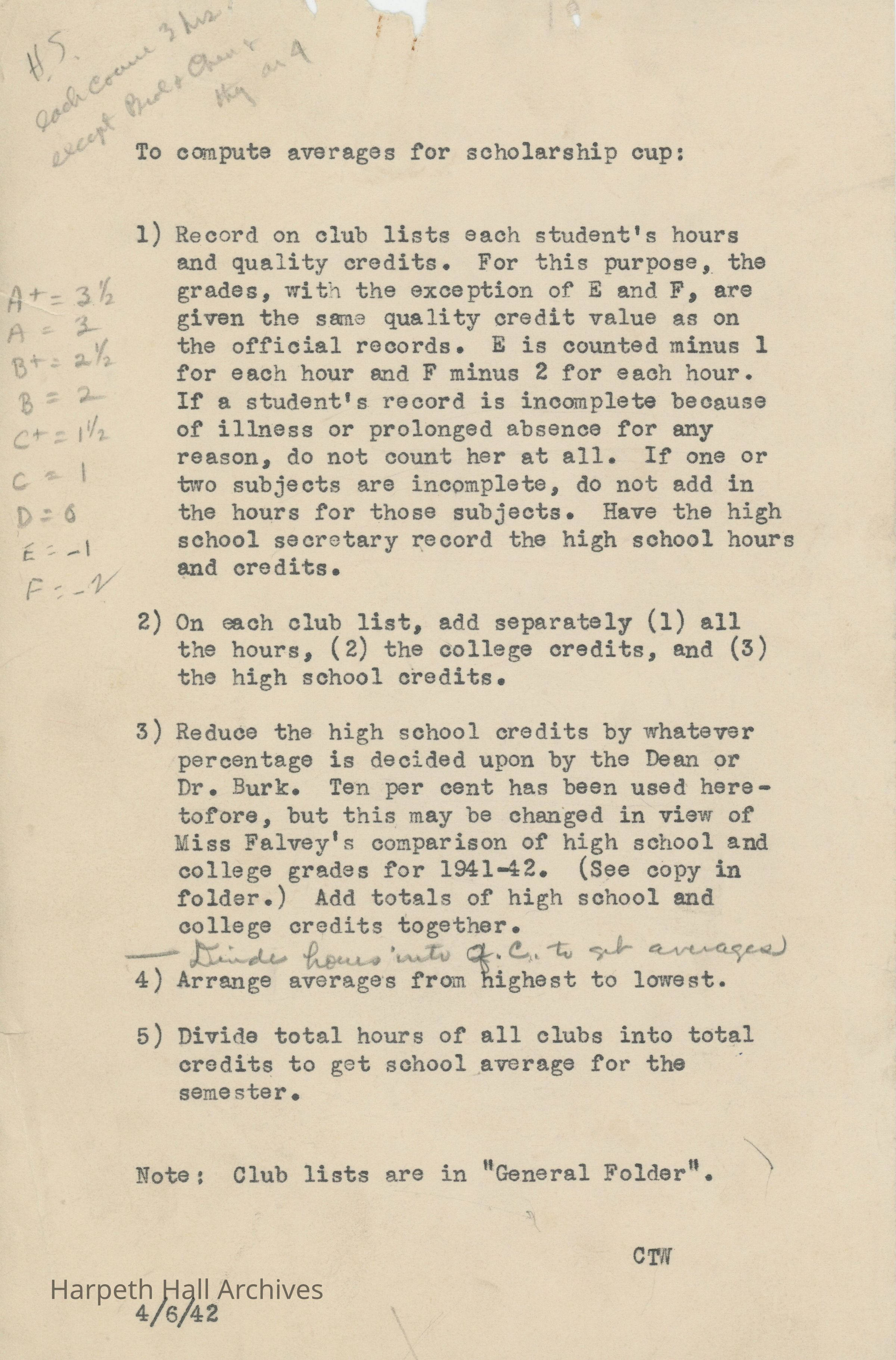 Guide for Computing Averages for Scholarship Cup, 1942Entry/Object ID