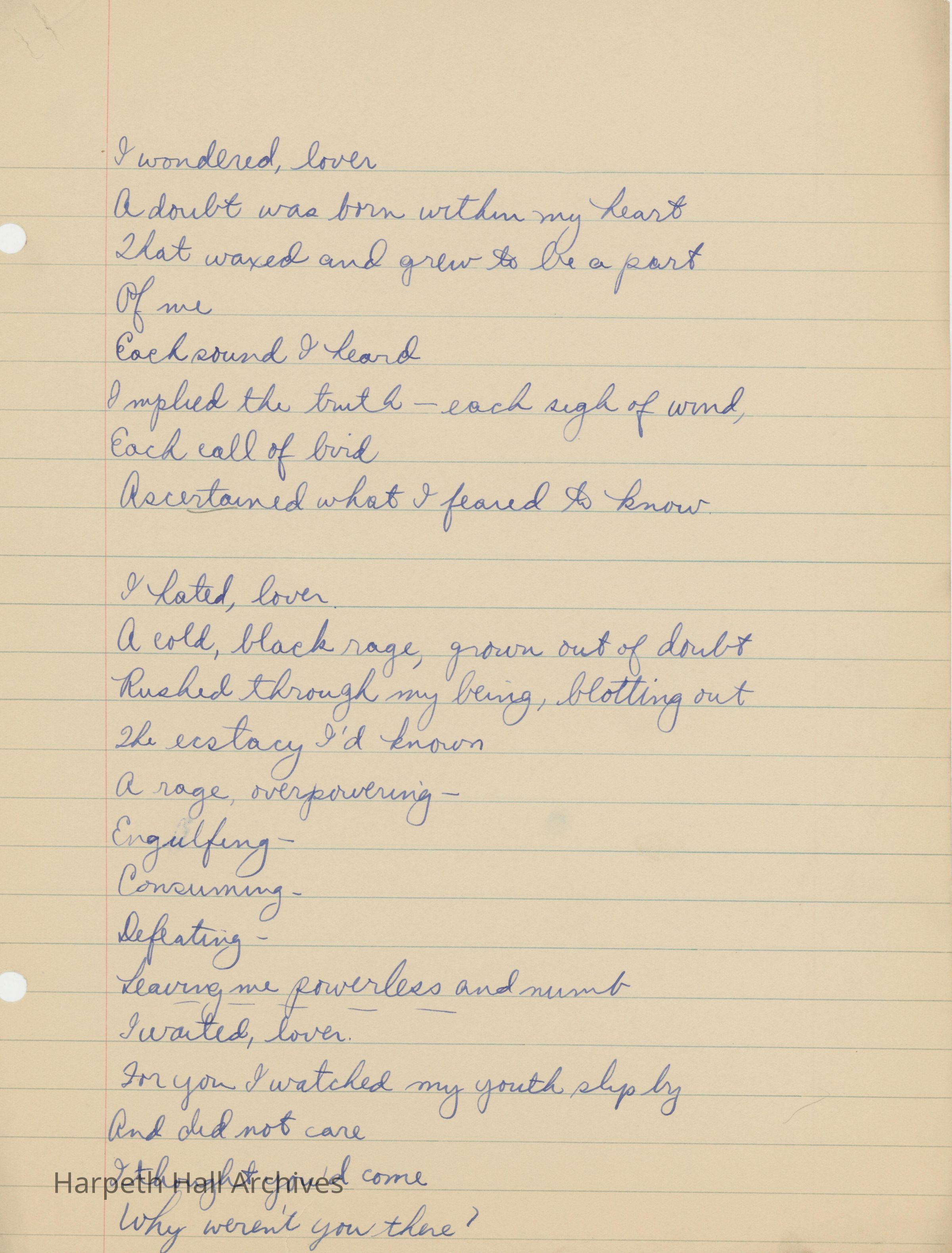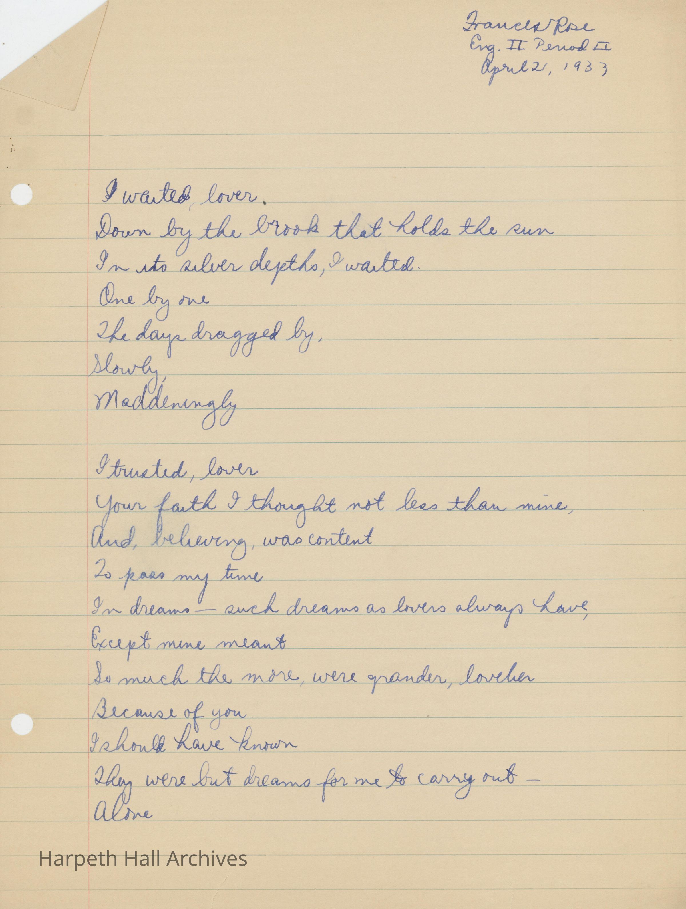 Poetry written by Ward-Belmont student Frances Rose on April 21st, 1933.