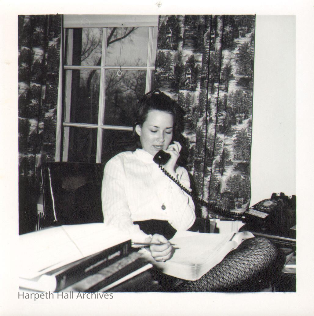 Jean "Jeannie" Crawford-Lee (1970) talks on phone while making notes in 1970.