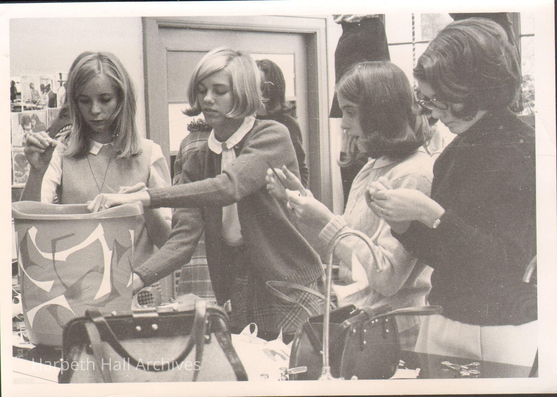 Nancy LeQuire Crow (1970), Elizabeth "Beth" Parrish (1970), and Ann Sherman Edelman (1971) in a classroom (maybe science) in 1970.