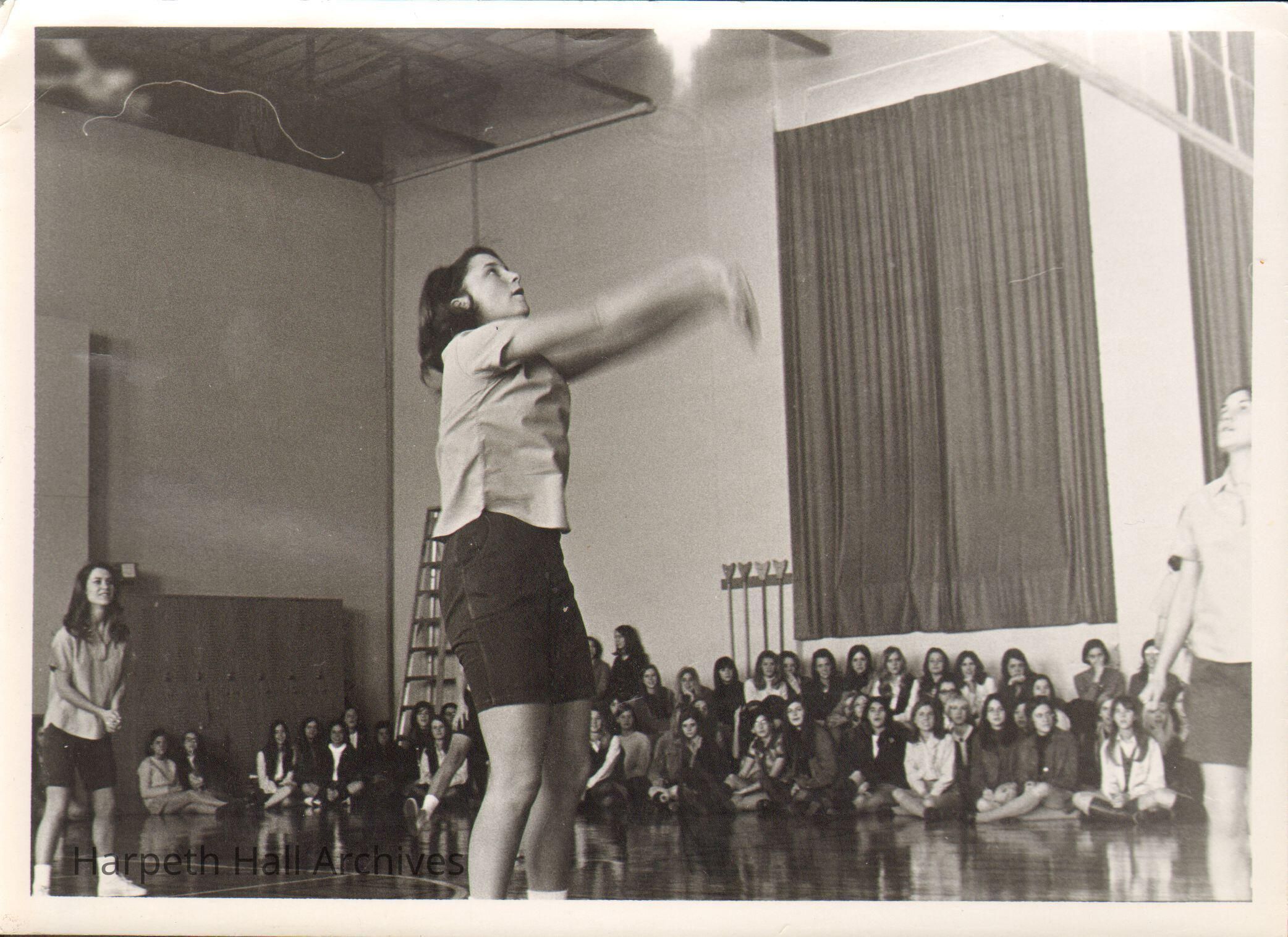 Students playing volleyball in 1970 in Bullard gym.