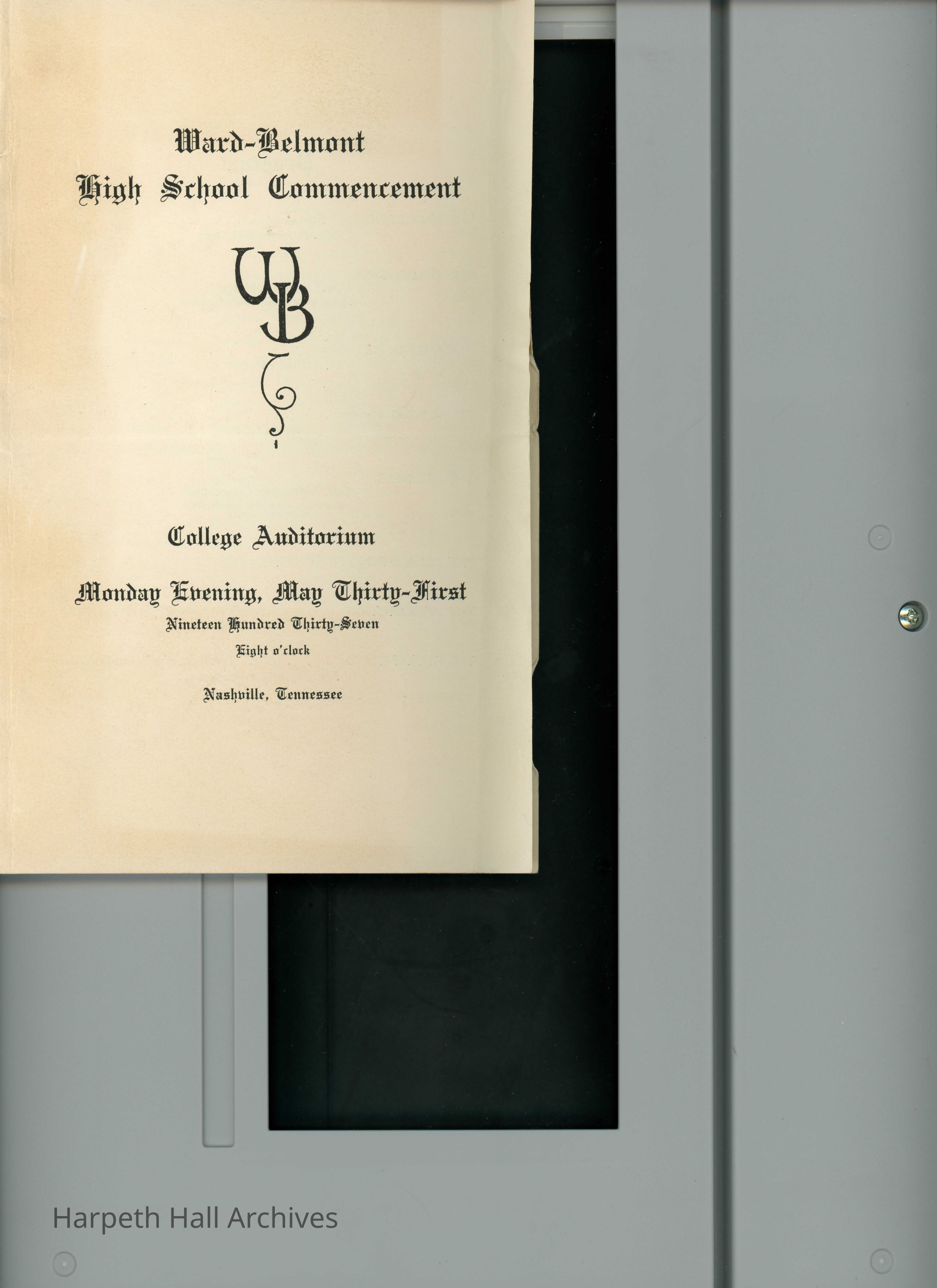 Ward-Belmont High School Commencement Program 1937Entry/Object ID