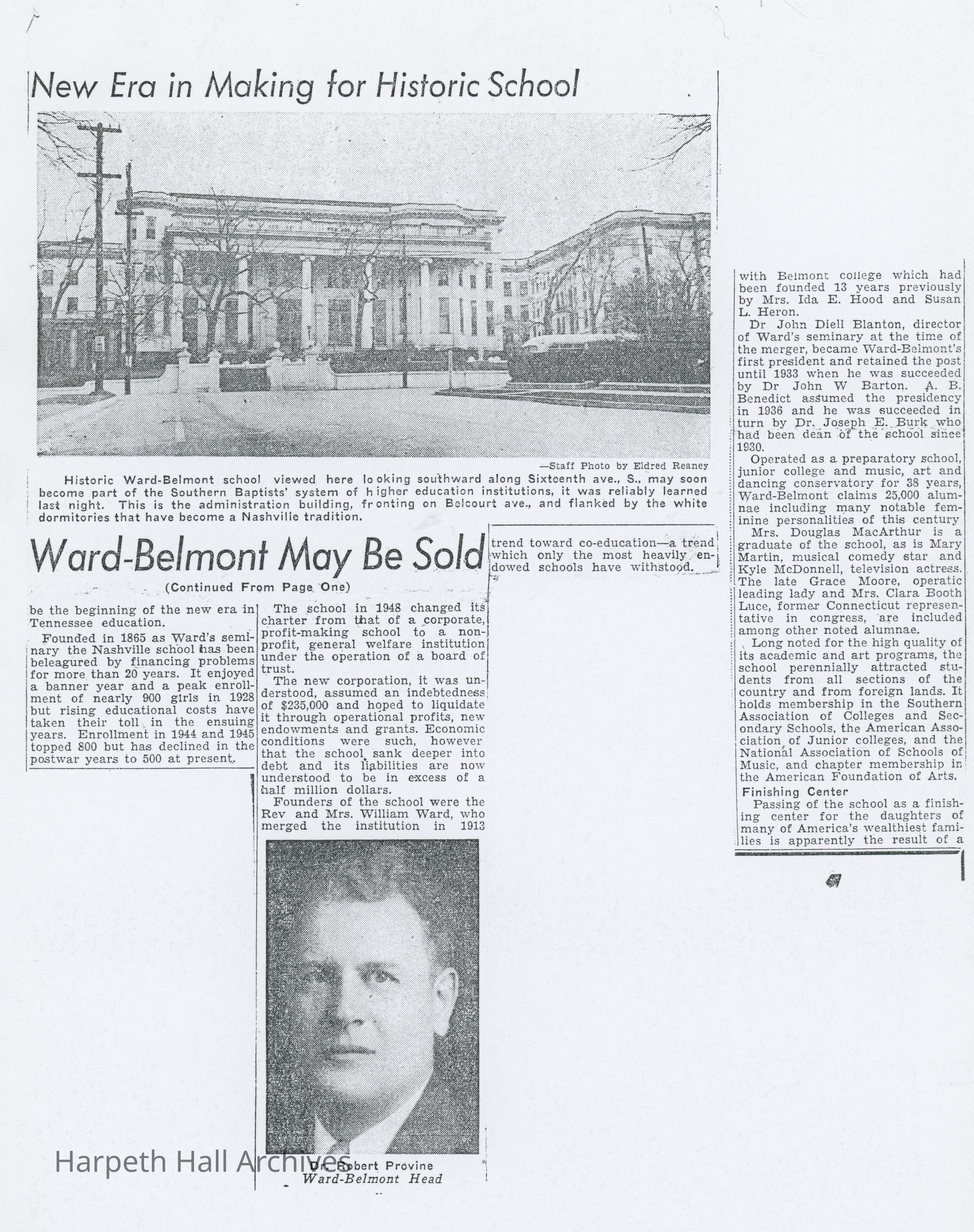 Article on the sale of Ward-Belmont.