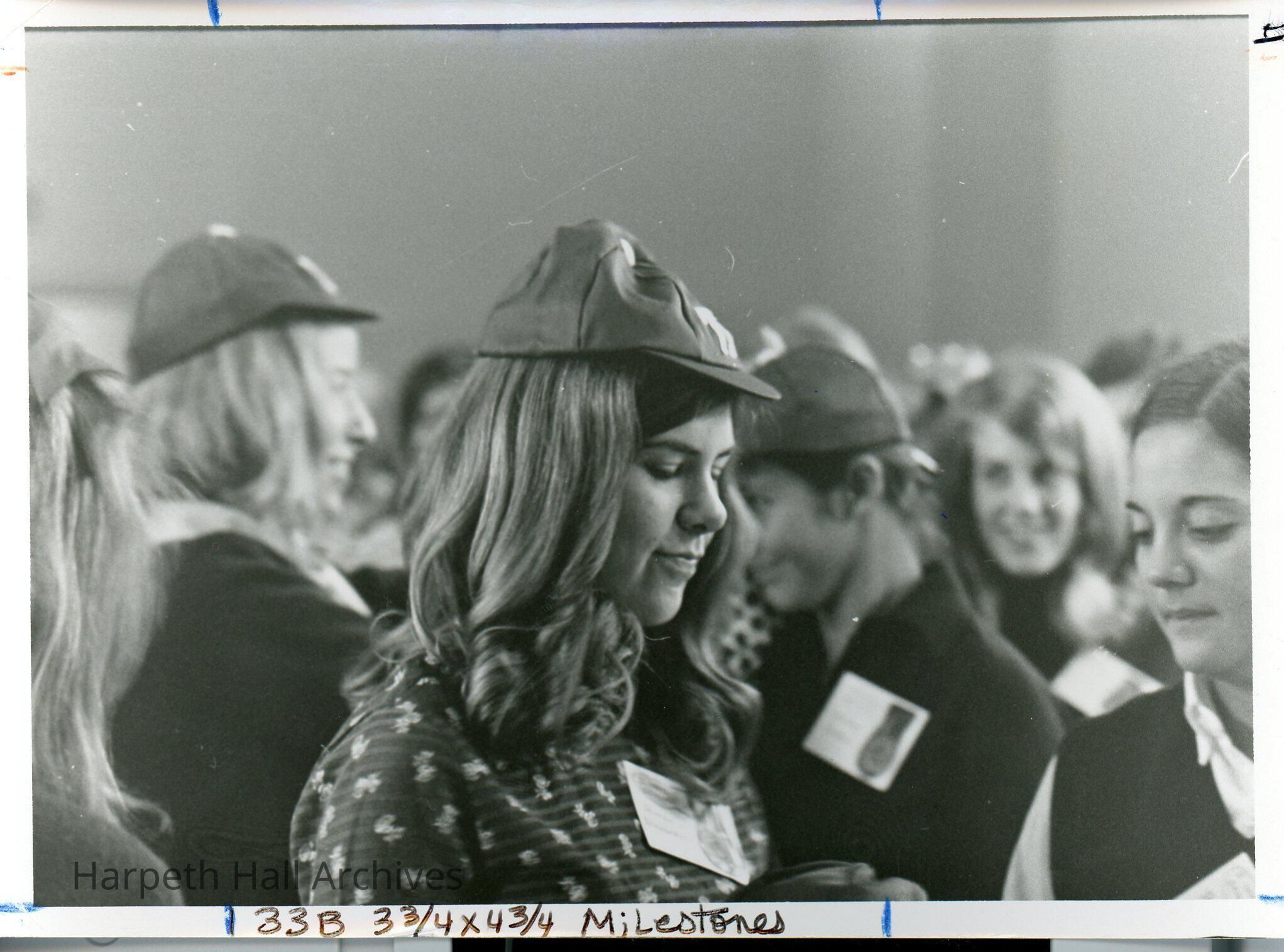 Students wearing beanies, 1971