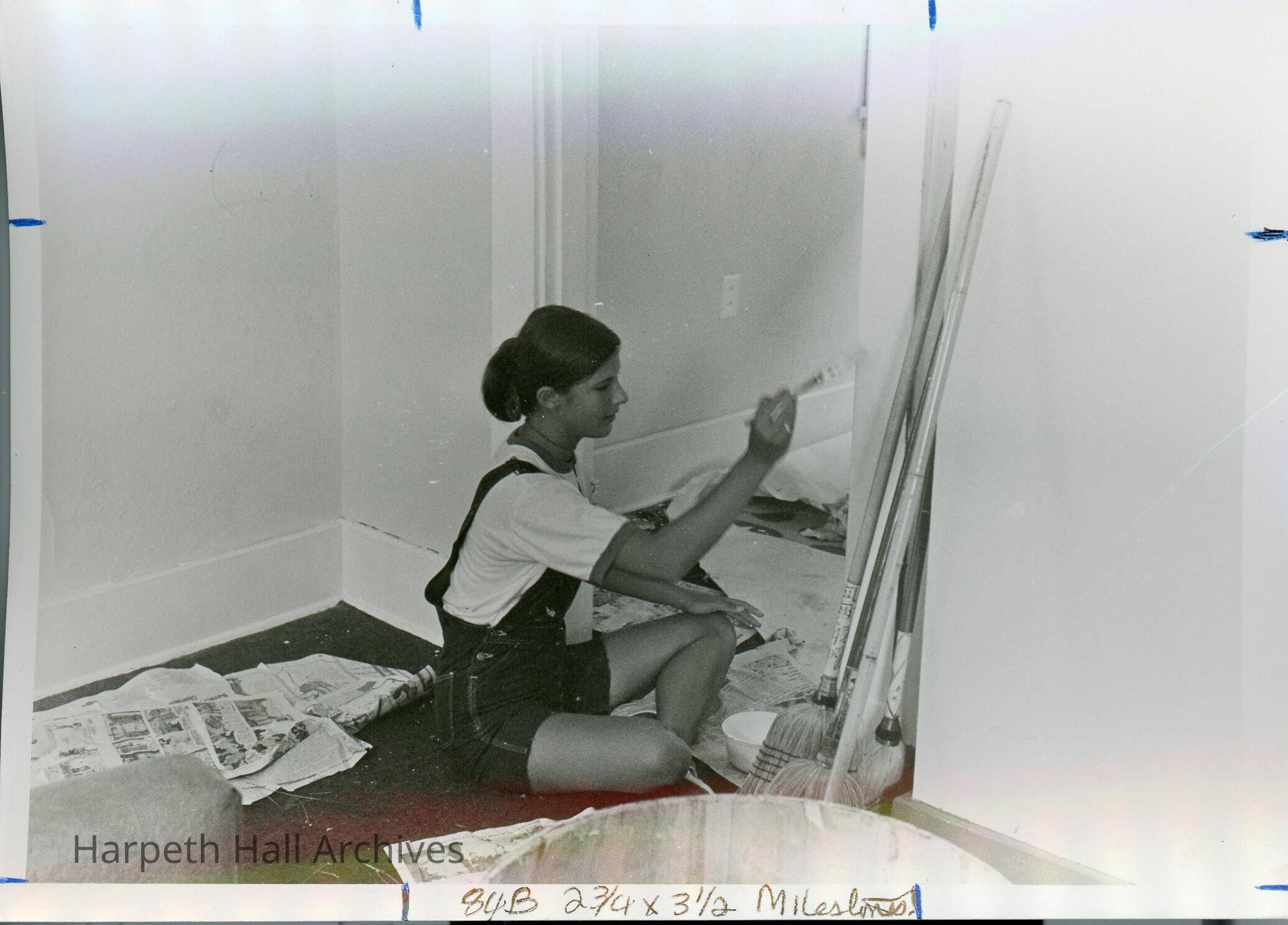 Sarah "Shelley" Buford Cook (1971) painting the interior of a room. It could possibly be the Senior House.