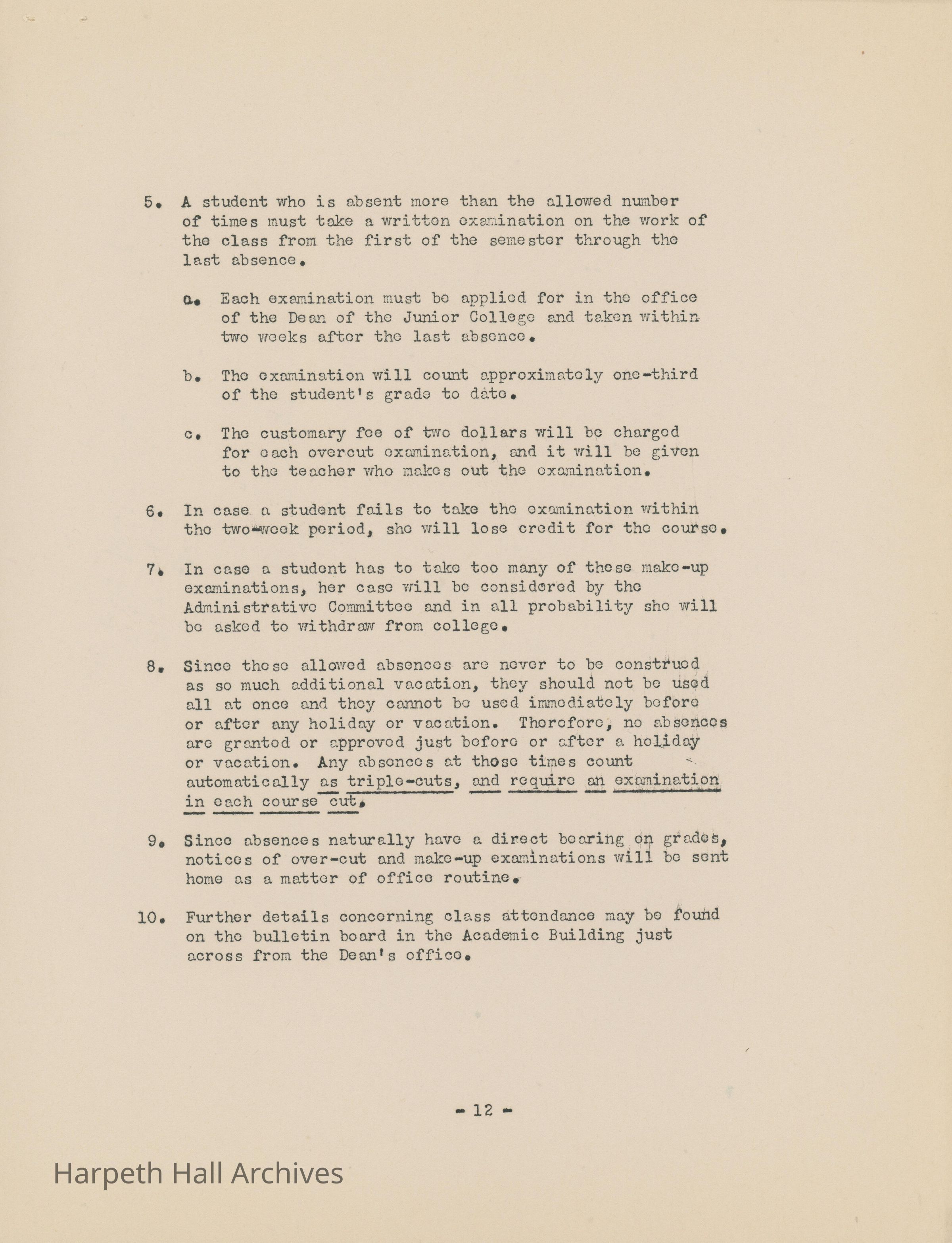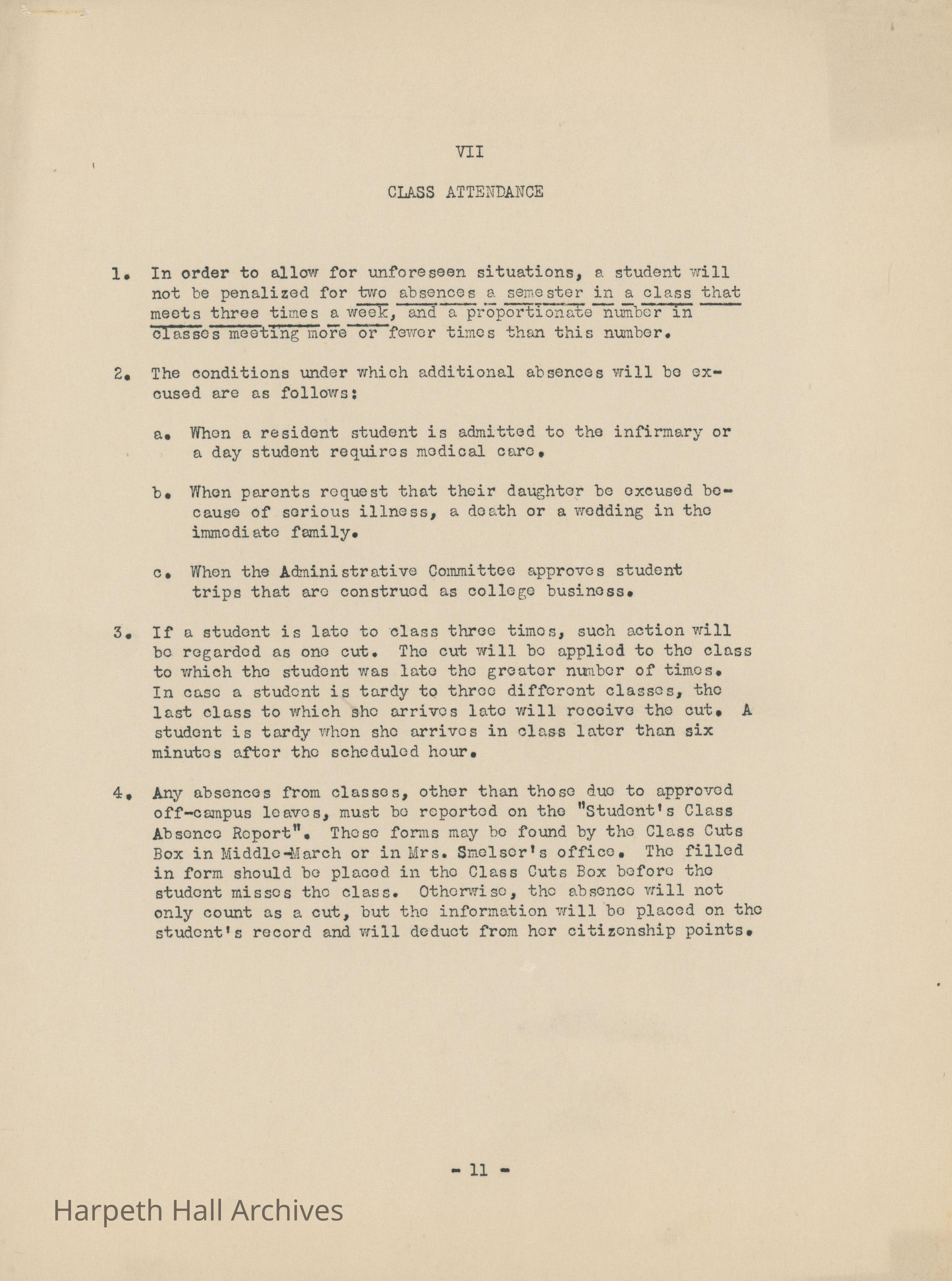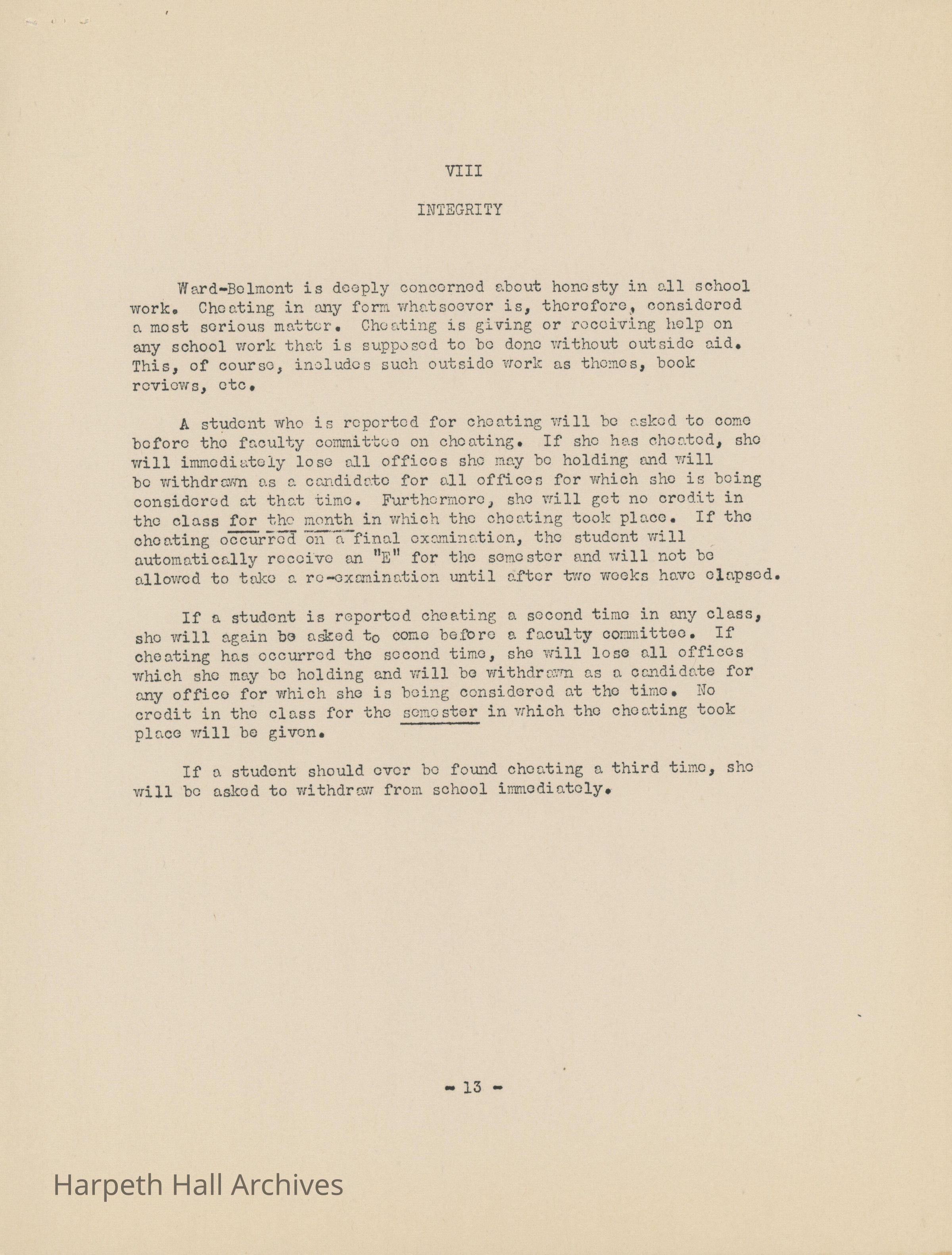 Ward-Belmont bulletin on class attendance and integrity.
