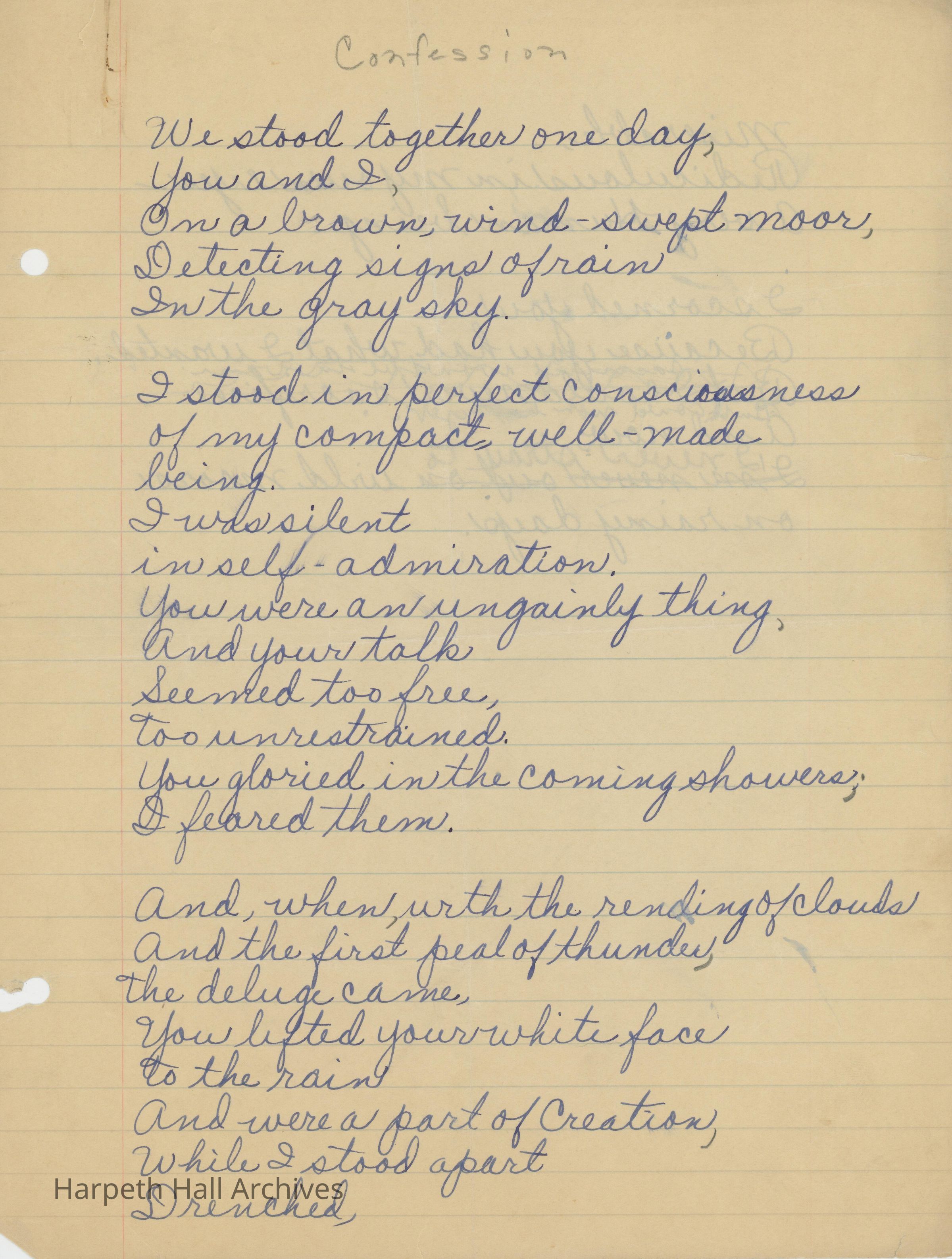 A poem entitled, "Confession" written by a Ward-Belmont student.
