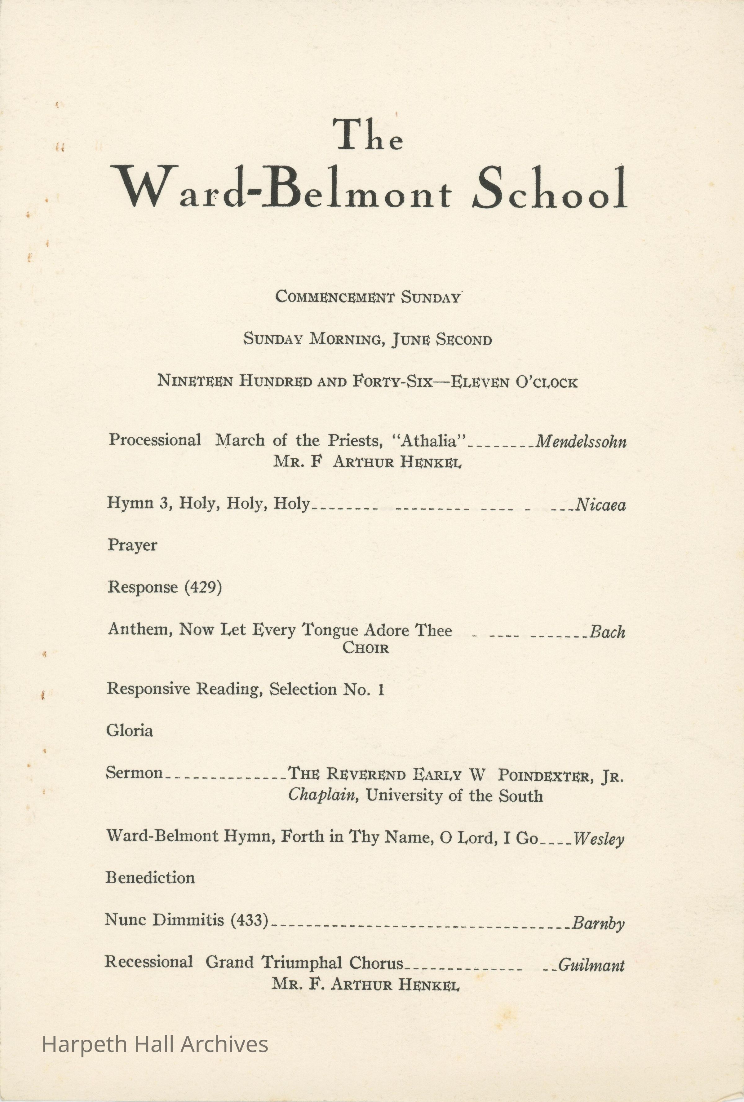 The program for Ward-Belmont's Commencement Sunday on June 2nd, 1946.Collection