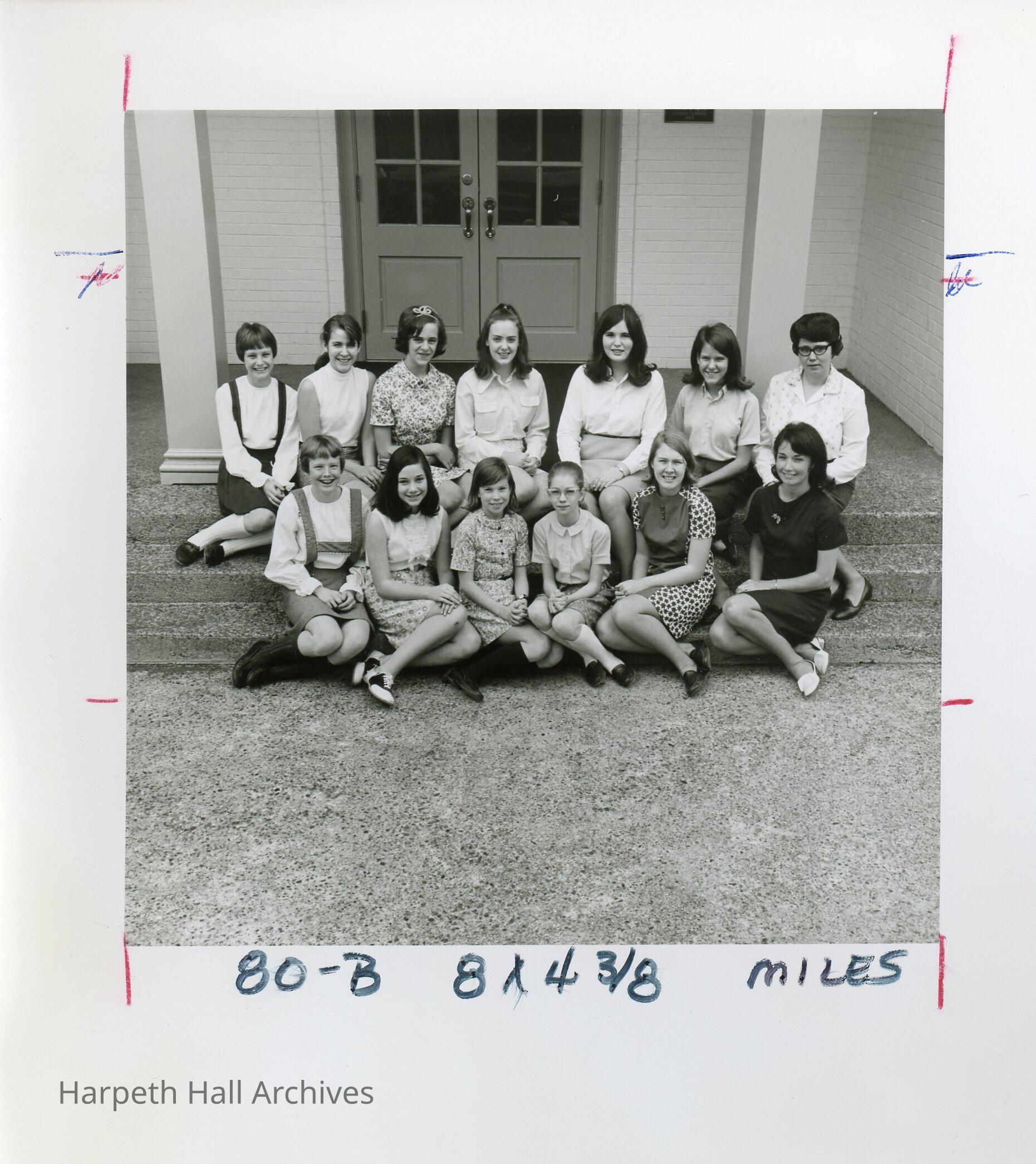 Class of 1973 in the 1970's sitting on the steps of the middle school.
