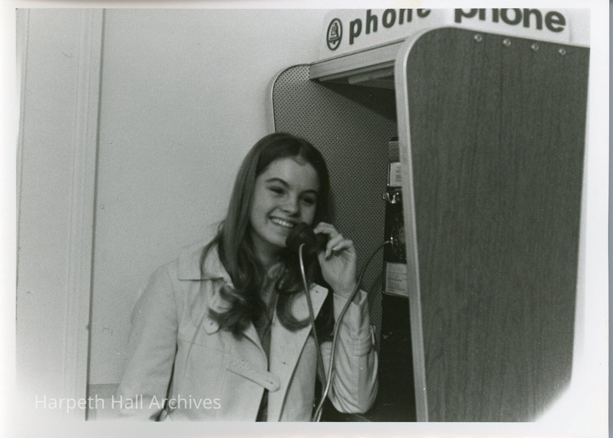Deborah Thornton uses phone booth in 1972.