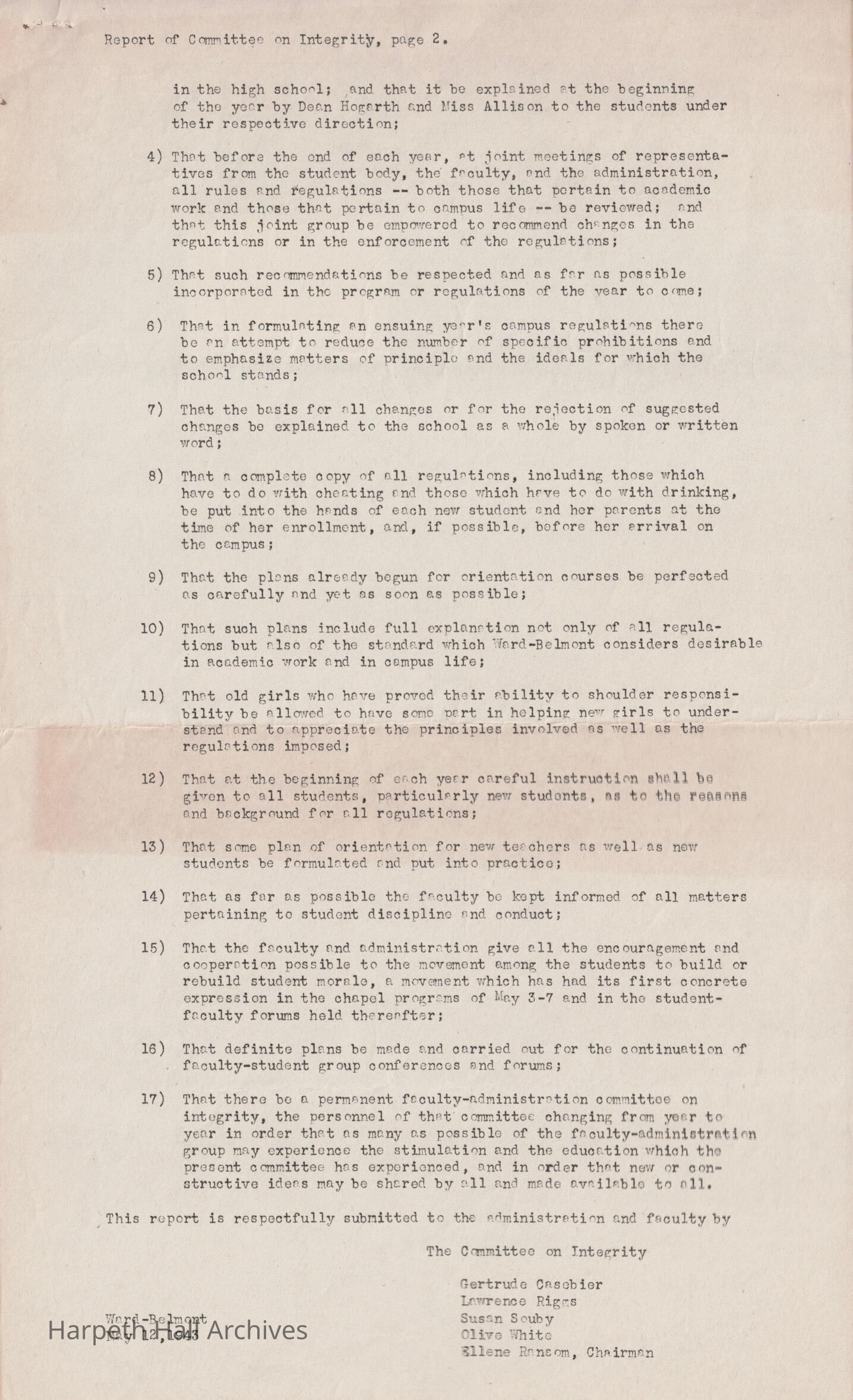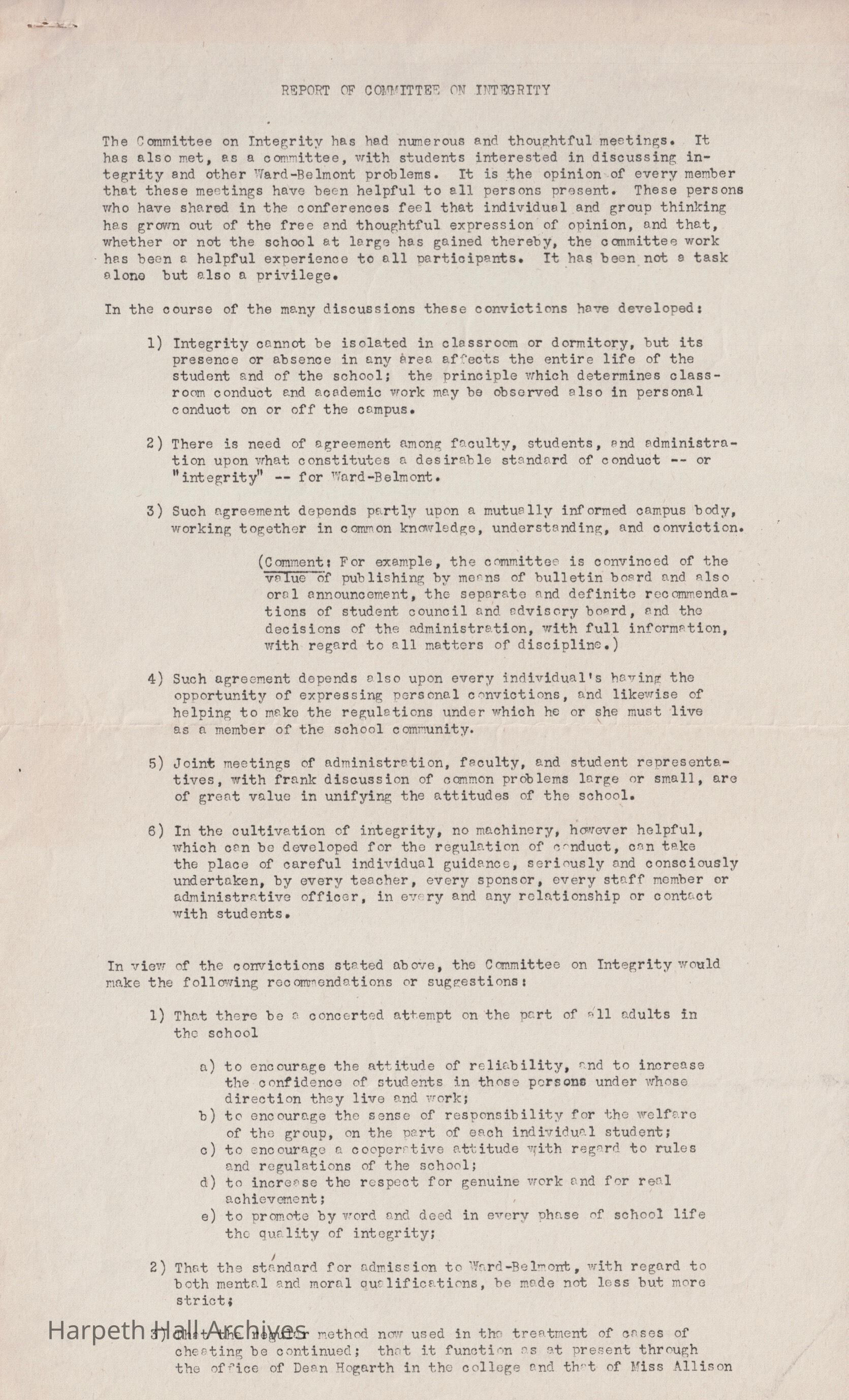 Ward-Belmont Integrity Committee Report, 1943Entry/Object ID