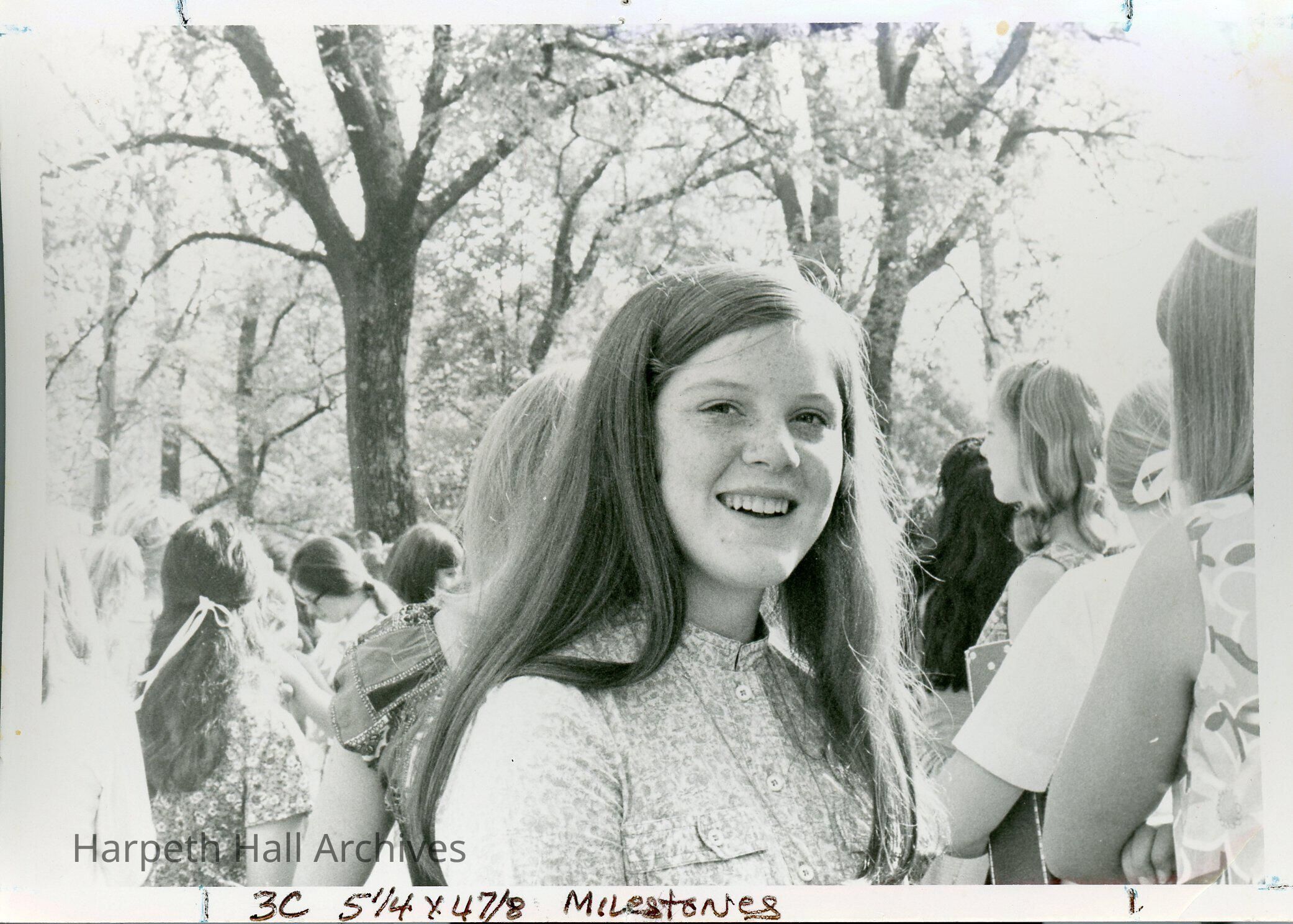 Barbara Massie Hunt (1974) stands outside with other students in 1972.