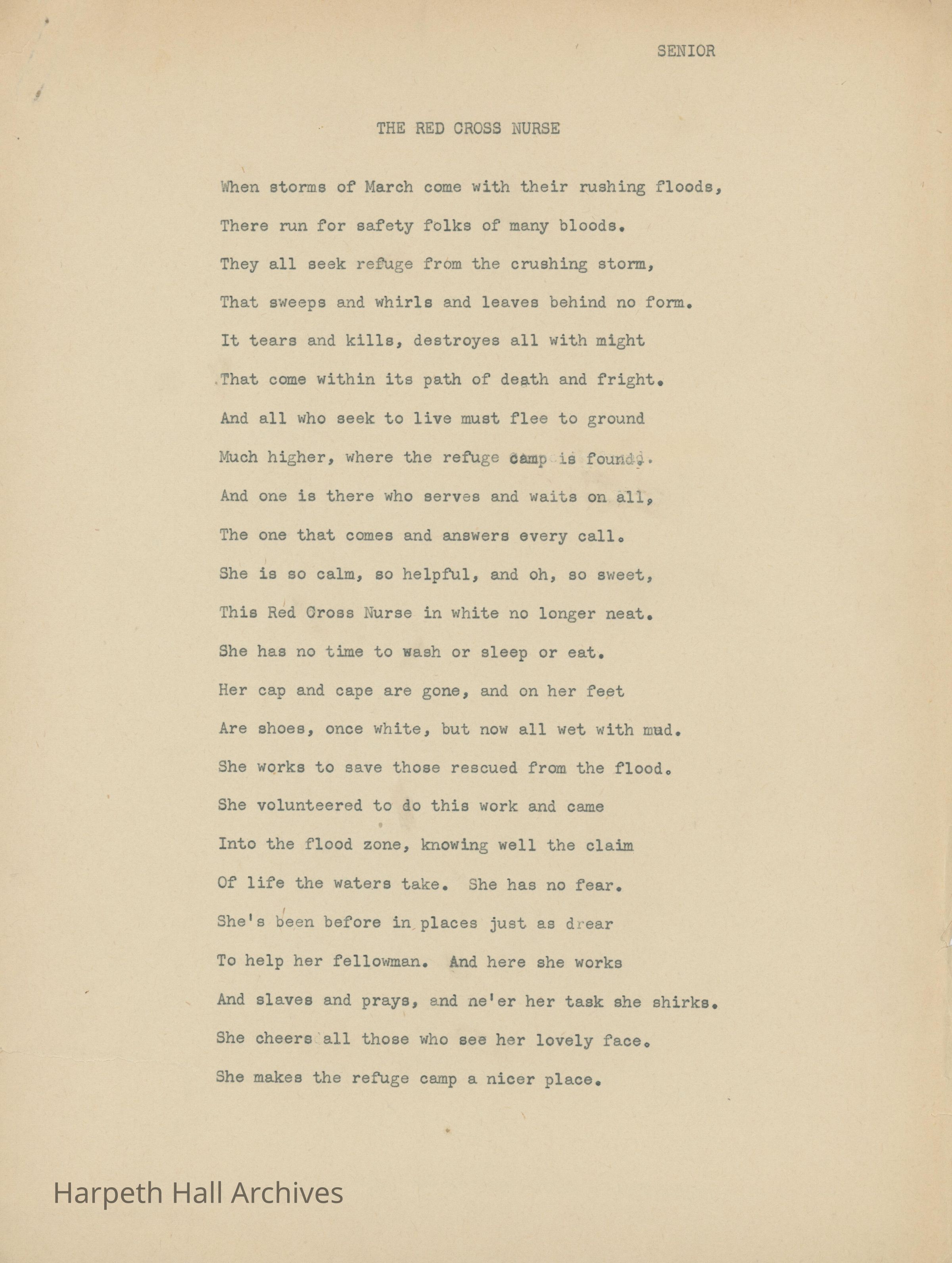 An essay entitled, "The Red Cross Nurse" written by a Ward-Belmont senior.