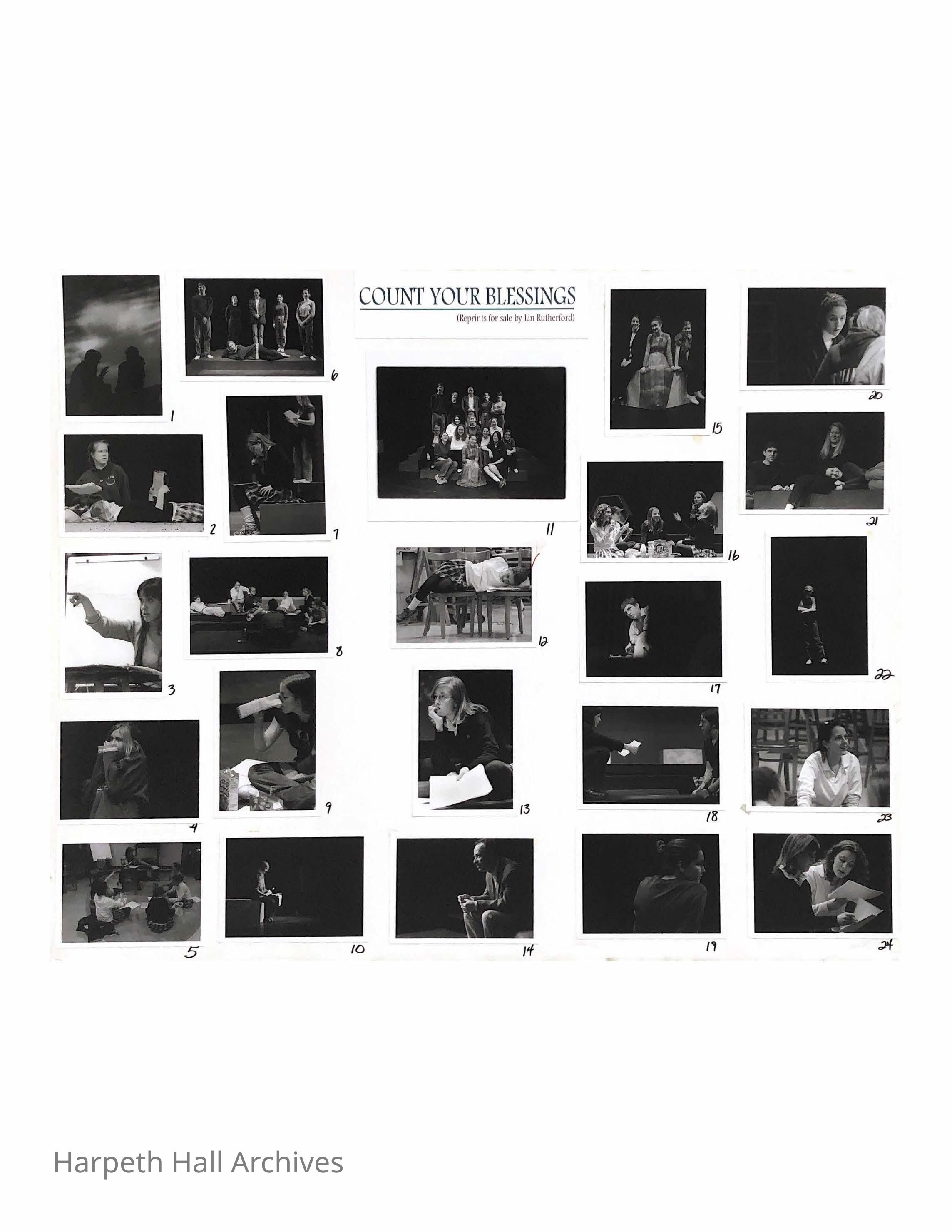 The cast board for the showing of Count Your Blessings put on by the Harpeth Hall Playmakers in February of 2003.
