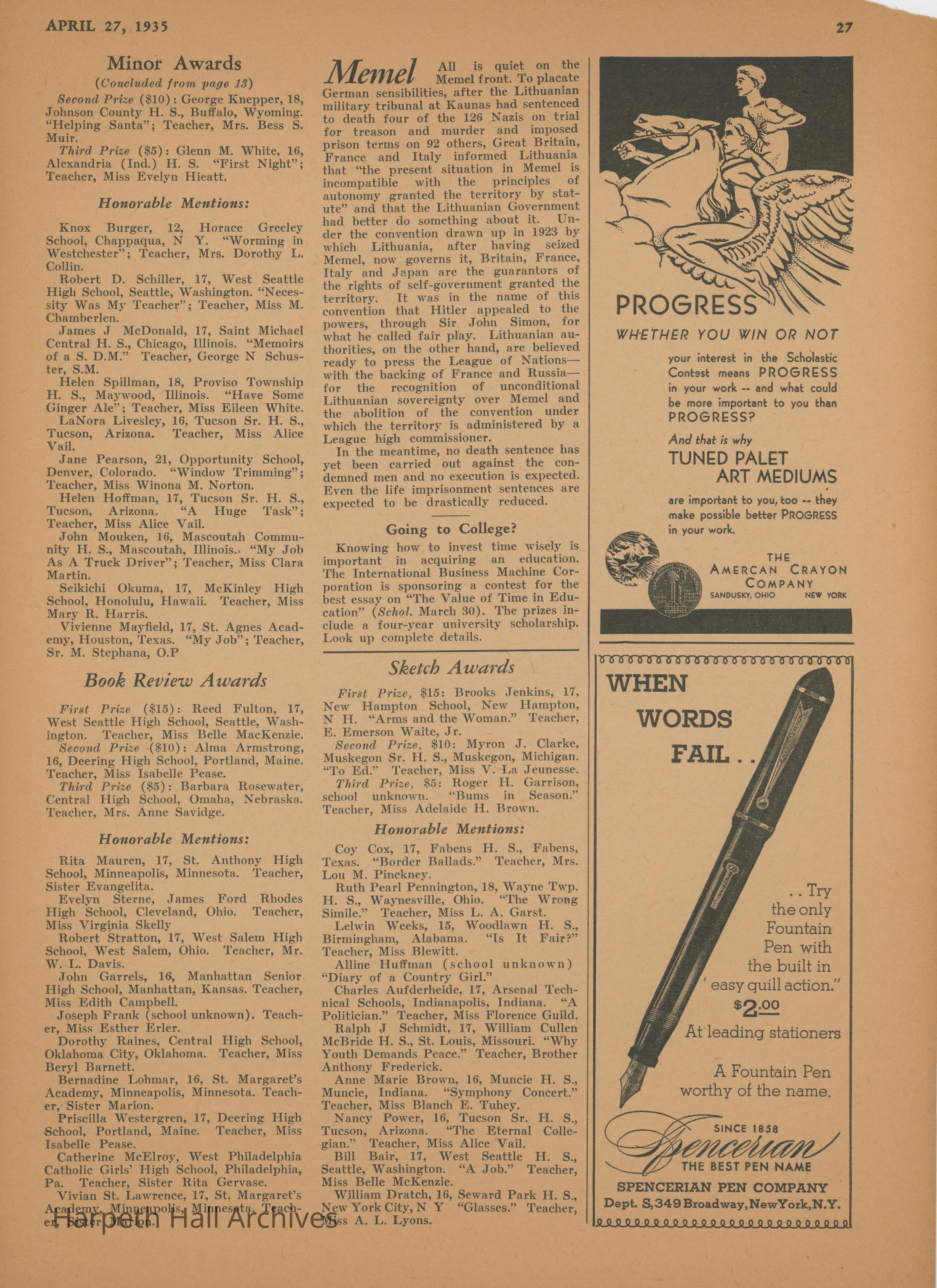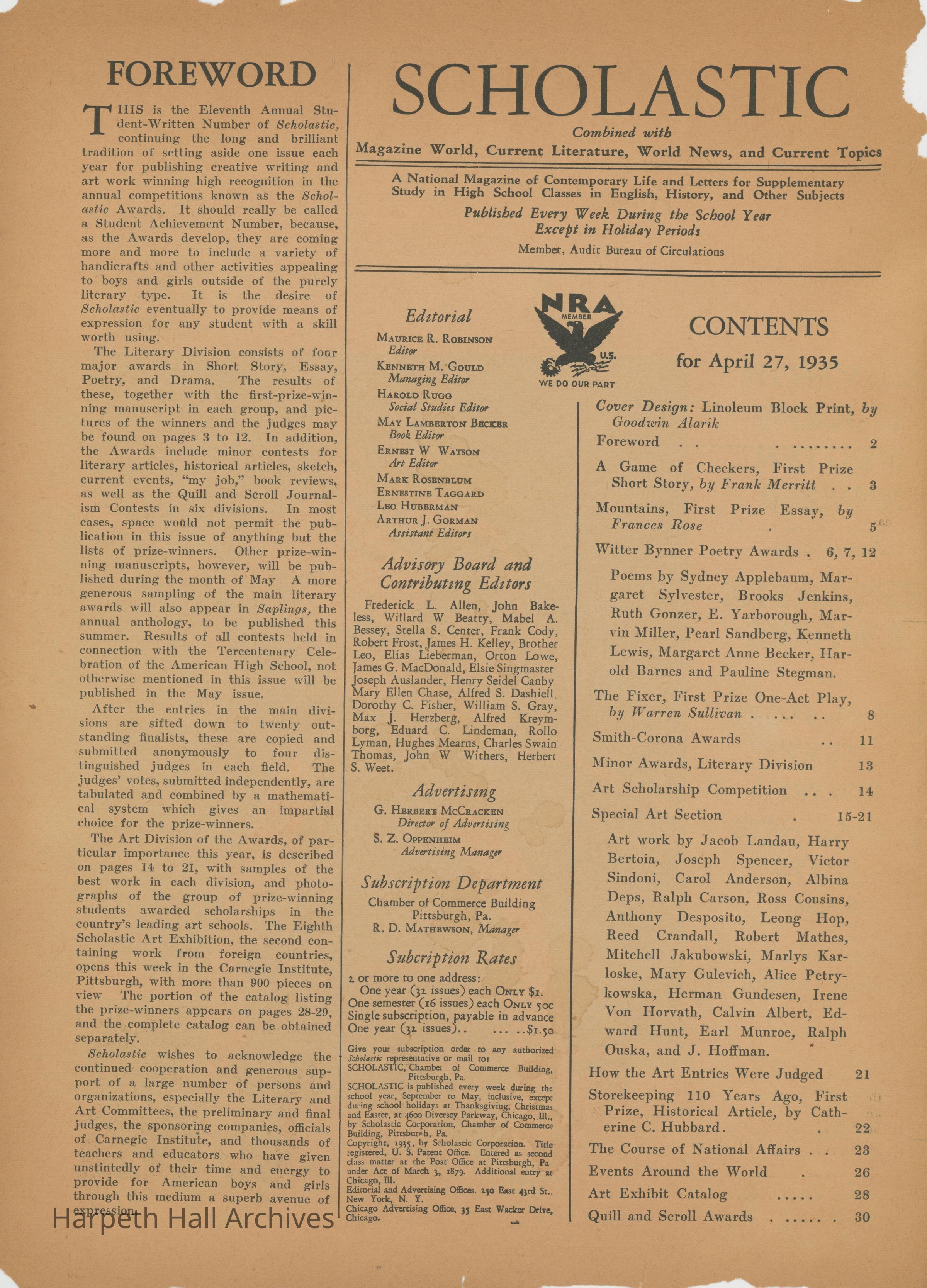 Scholastic Journal, 1935Entry/Object ID